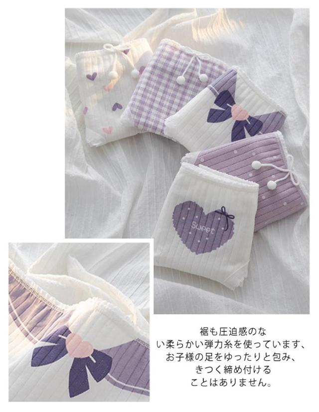| リボンとレースが、さらに女の子らしさをアップ!かわいいショーツ ウェストゴムとパンツは完璧にフィットしています。伸縮性がよく、腰回りに締め付け感がなくぴったりと合わせ、安定感を与えます。 裾も圧迫感のない柔らかい弾力糸を使っています、お子様の足をゆったりと包み、きつく締め付けることはありません。 お尻にも全方位に包み込みますので、ずり上がり、ズレなどの心配はありません。 一日身につけていても、ストレスを感じさせないソフトでしっとり心地良いフィット感。 | |