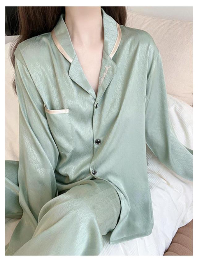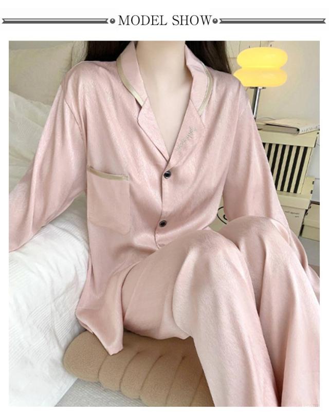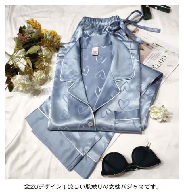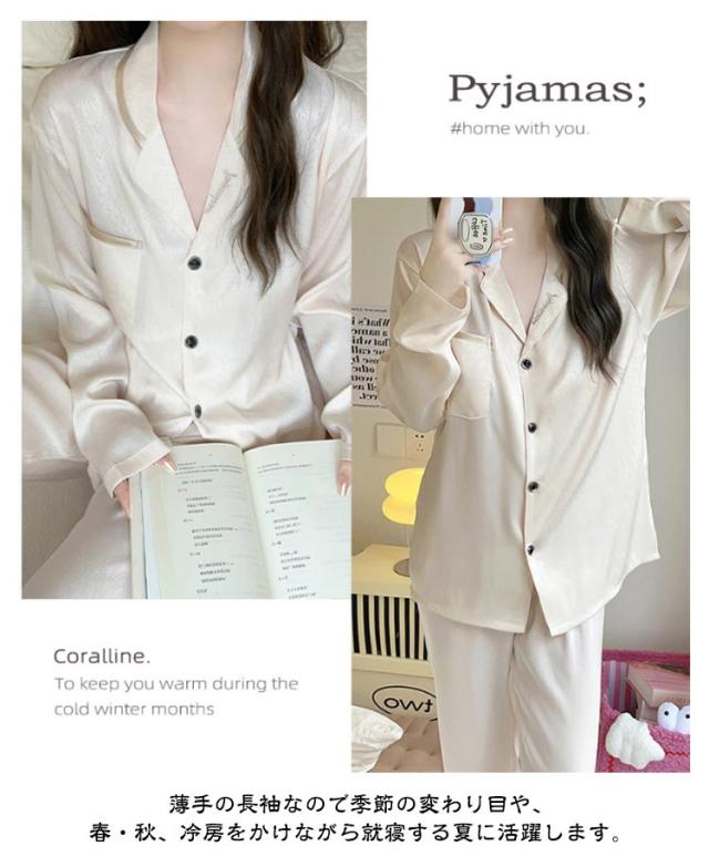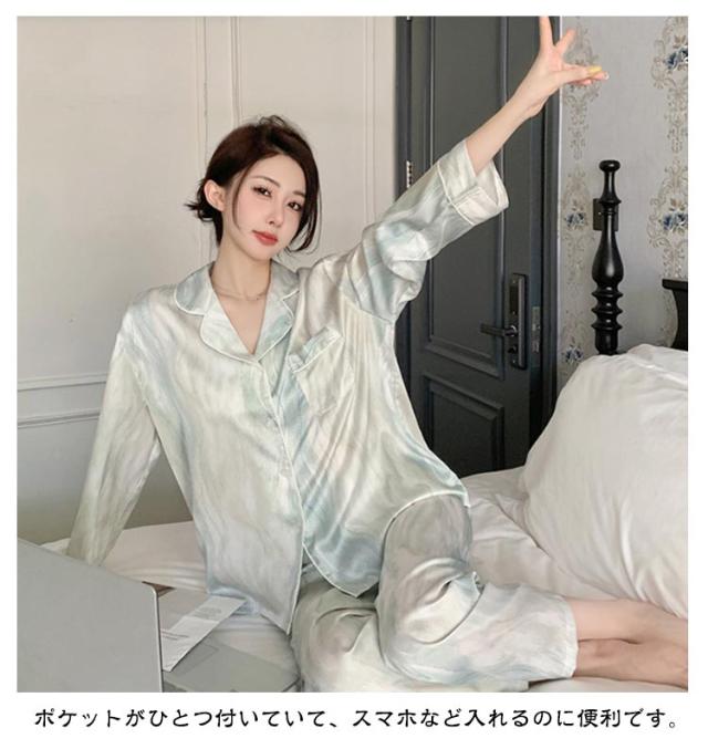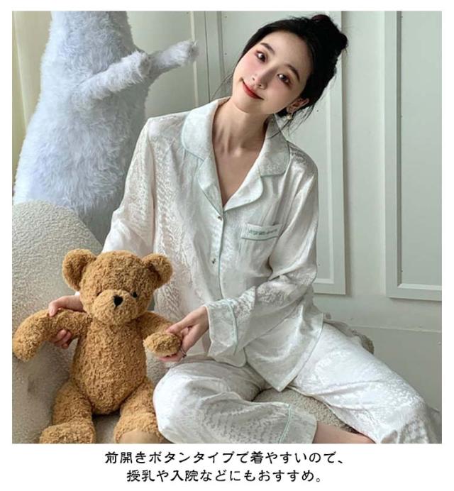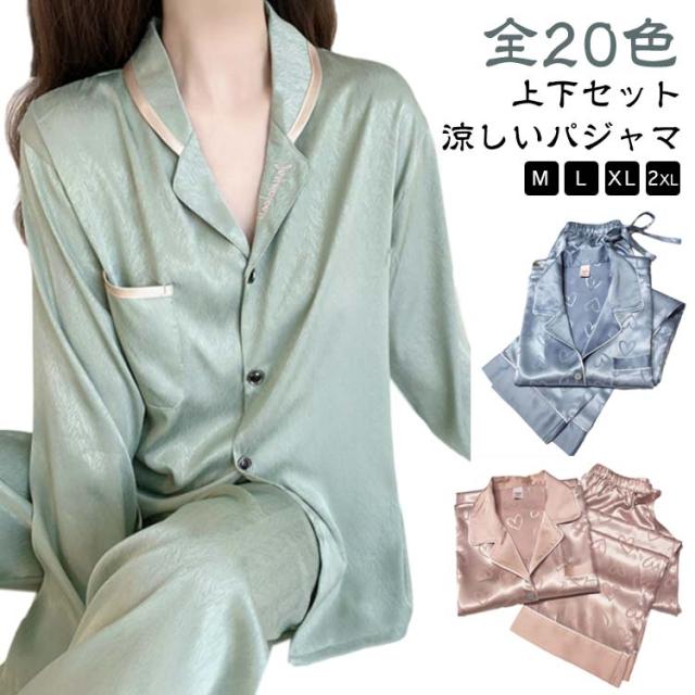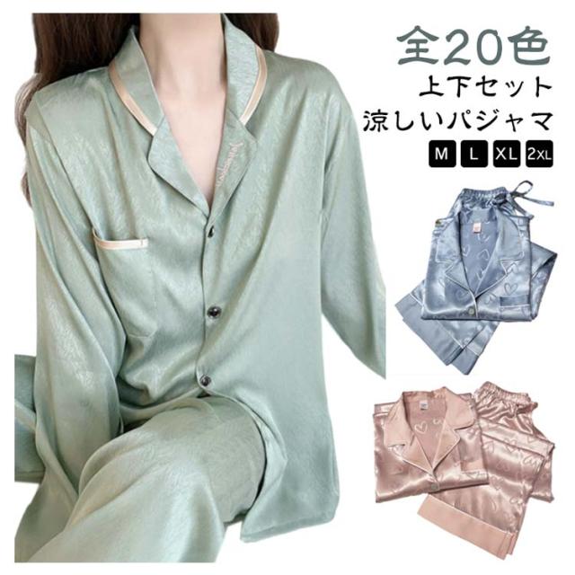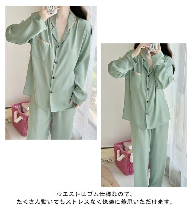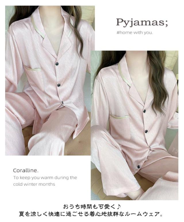 女性 夏 無地 長袖 おしゃれ アイスシルク パジャマ ルームウェア サテン風 涼しい ナイトウェア ロングパンツ レディース シャツ 可愛い 部屋着 入院 薄手 上下セット 春 秋 寝巻き 婦人用 ねまき 前開き