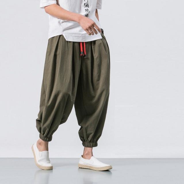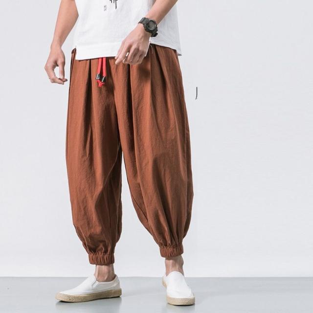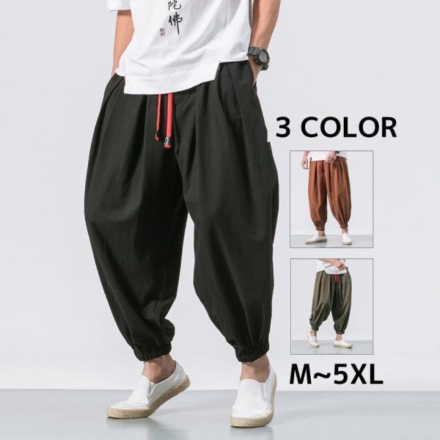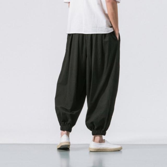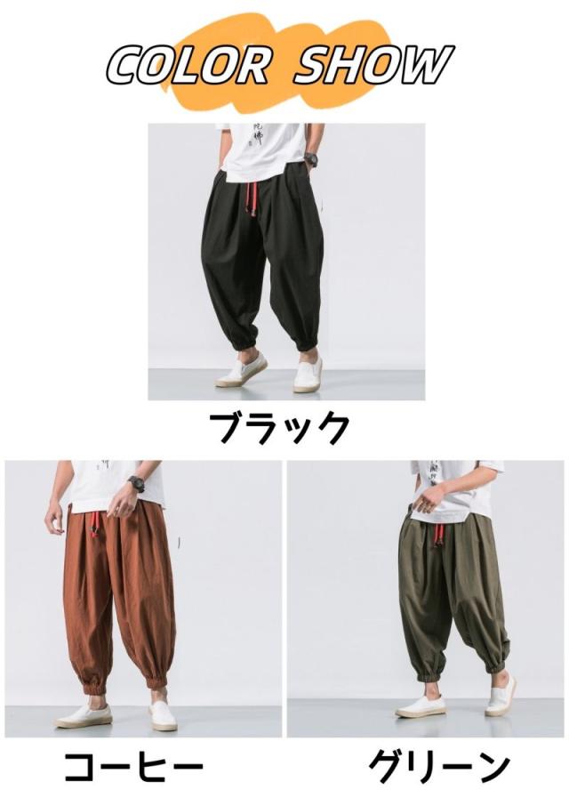 ワイドパンツ メンズ 綿麻風 サルエルパンツ ガウチョ ウエストゴム ストライプ カジュアル ゆったり 大きいサイズ 春夏