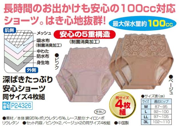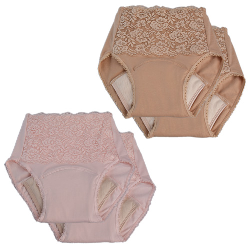 深ばきたっぷり安心ショーツ 4枚組 尿漏れショーツ パンツ 抗菌消臭加工 レディース 婦人 ミセス シニア 介護用品 ピンク ベージュ レースショーツ シニアファッション シンプル 介護 入院