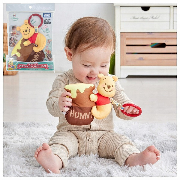 くまのプーさんのぬいぐるみをひっぱるとブルブルしながら戻ります。 赤ちゃんが大好きなパリパリ入り。