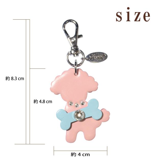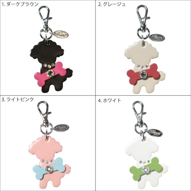 【メール便対応】Happyチャーム -41 トイプードル 本革 牛革 ドッグ 犬 ほね トイプー プードル レザー スワロフスキー付 シンプル プレゼント ギフト キーリング キーホルダー バックチャーム チャーム 日本製 贈り物 ハッピー バッグ 可愛い 上品┃