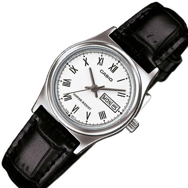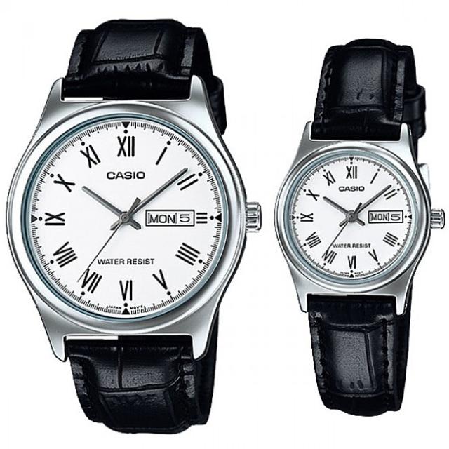 CASIO【カシオ/スタンダード】ペアウォッチ 腕時計 アナログモデル ホワイト文字盤 ブラックレザーベルト MTP-V006L-7B-LTP-V006L-7B 海外モデル