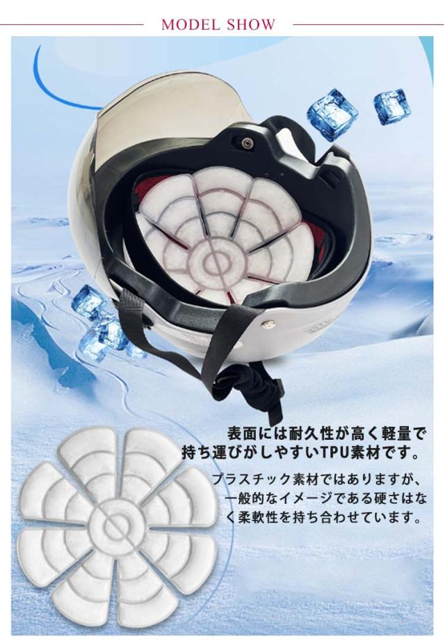 | サイズについての説明 | /直径21.5CM:重量約90g 厚さ約0.6cm ※商品のサイズは手作業で測定させて頂いておりますので、若干の誤差があります。 【ご使用方法】 1.使用前に冷蔵庫や冷凍庫で20-30分冷やします。 2.帽子の中にセットします。 3.帽子を被り、頭に当たるように微調整してください。 |