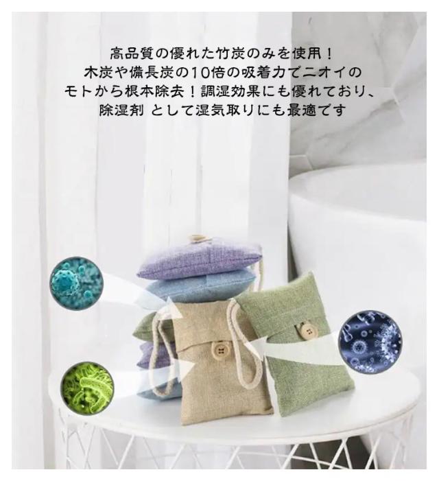 | 【高品質な竹炭】高品質の優れた竹炭のみを使用!木炭や備長炭の10倍の吸着力でニオイのモトから根本除去!調湿効果にも優れており、除湿剤 として湿気取りにも最適です 【環境や子供にも優しい】大自然の中で育った100%天然物なので、子供やペットにも大変優しく安心してご利用いただけます。 【繰り返し使用可能】天日干しをする事で繰り返し使用でき、使用後は自然に還す事ができるサスティナブル・エコグッズです。 【使用便利な竹炭バッグ】不織布と麻生地の二重加工袋で包装され、竹炭の劣化粉砕による漏れや着色を避けます。 【様々なシーンで活躍】靴・靴箱の他にも、衣類タンス・クローゼット・冷蔵庫・車・トイレ・ペットなどに利用できます。 【使用簡単】紐付きなので、使いたいところに置いたり、掛けたり、締めたりするだけ、どこでも簡単に利用可能。 | |
