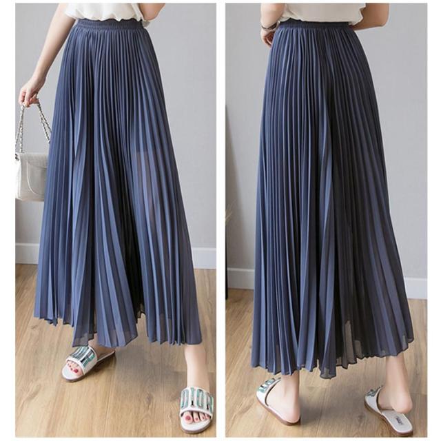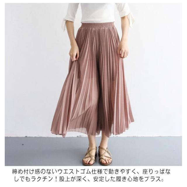 きれいめ シフォン ロング 送料無料 おしゃれ ガウチョパンツ スカーチョ プリーツ プリーツスカート ウエストゴム プリーツパンツ ワイドパンツ 送料無料 女性 ロングパンツ ボトムス 通勤 通学 シンプル
