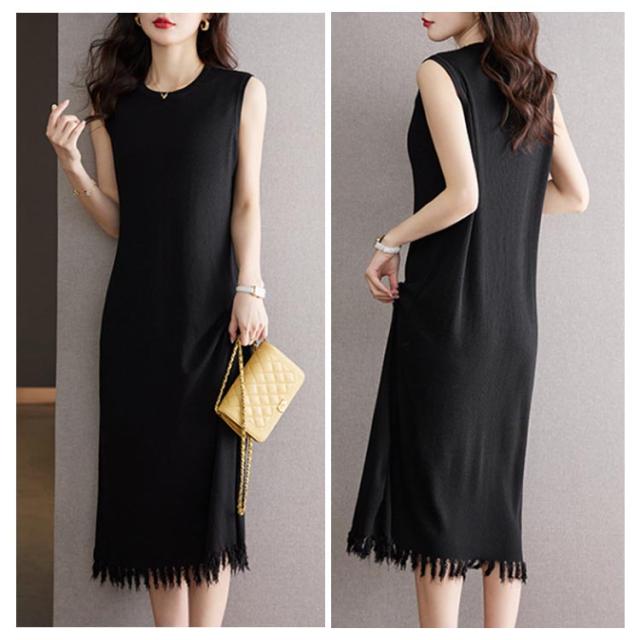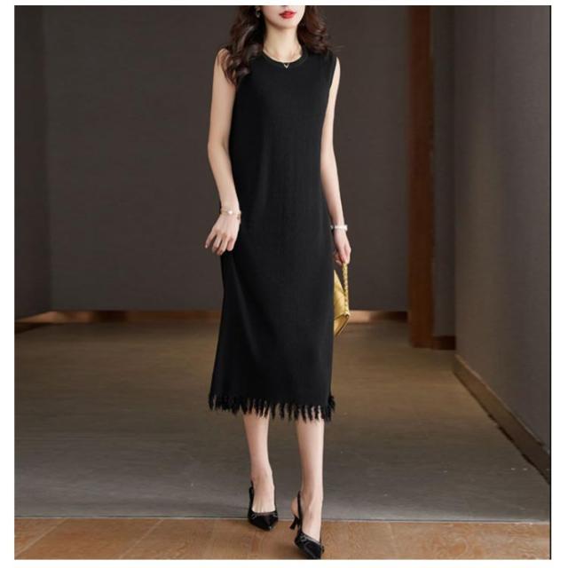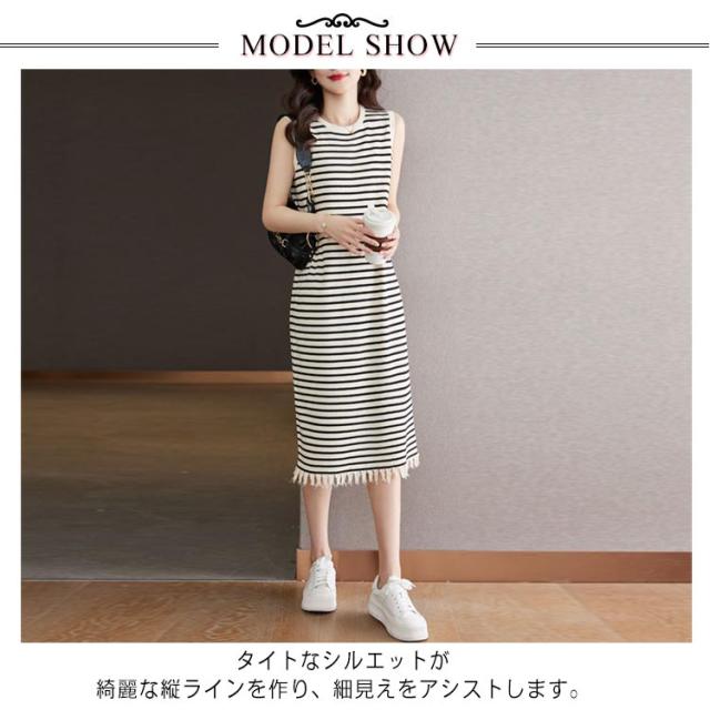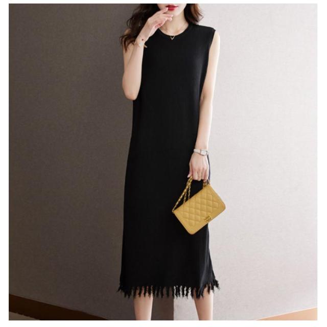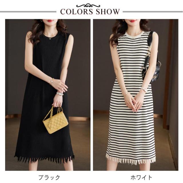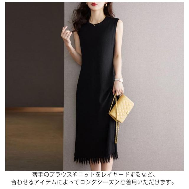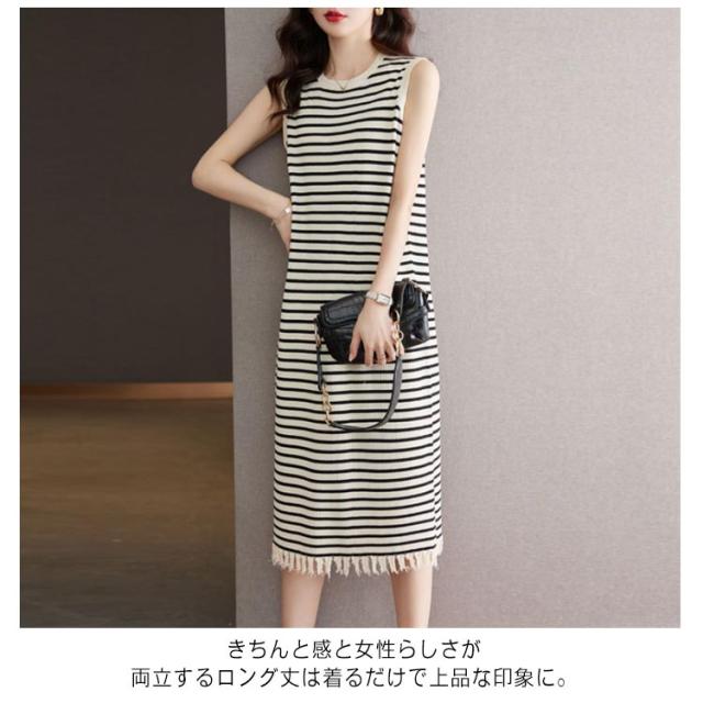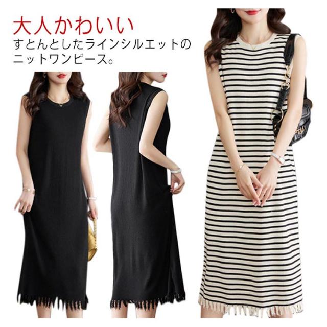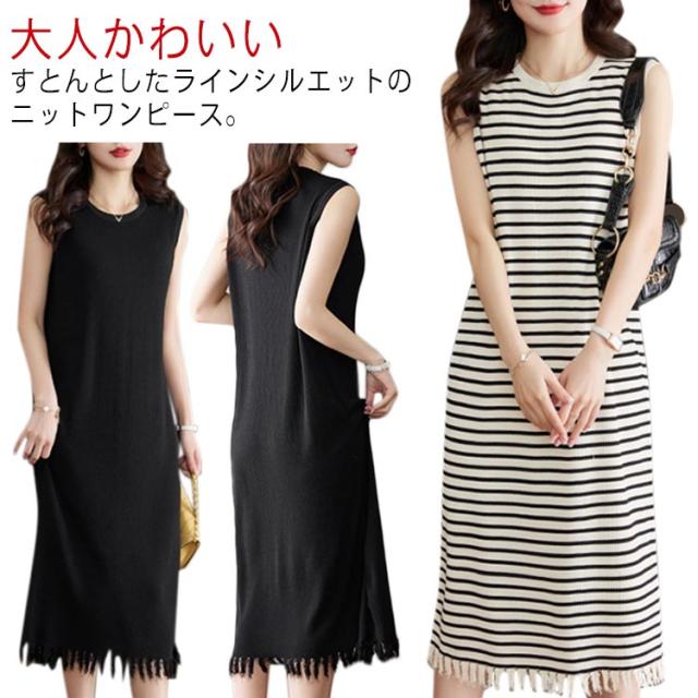 リブニット 着痩せ レディース ノースリーブ ロングワンピース サマーニット ニットワンピース 無地 春 夏 タイト 袖なし ミモレワンピース ラウンドネック Aライン 送料無料 微ライン おしゃれ