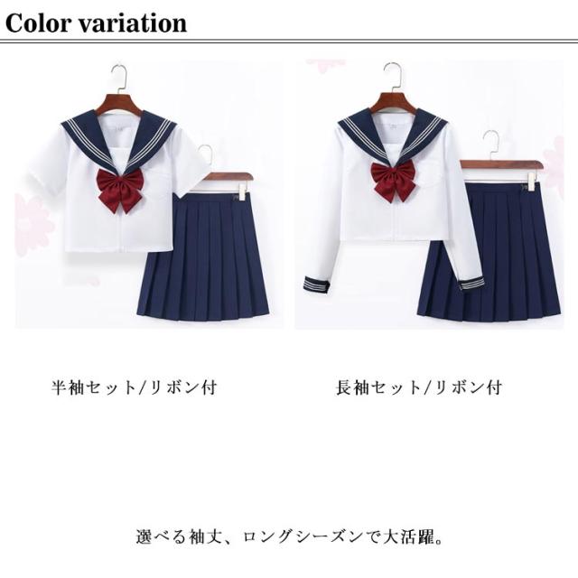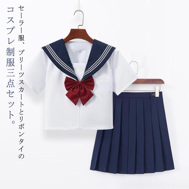 セーラー服 コスプレ 可愛い 学生服 上下セット 半袖 長袖 JK制服 3点セット 女子高校生 レディース 高校生 セーラー服 半袖 ショートスカート 女子制服 学院風 リボンタイ 学生服 衣装 仮装 制服 春秋 夏 セットアップ