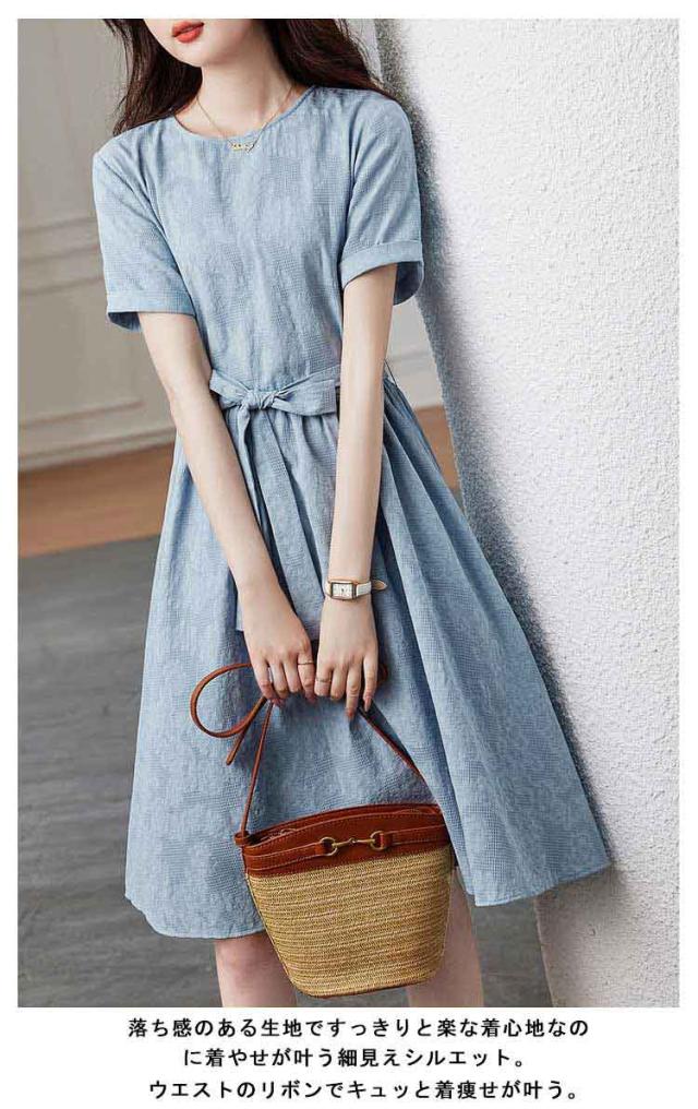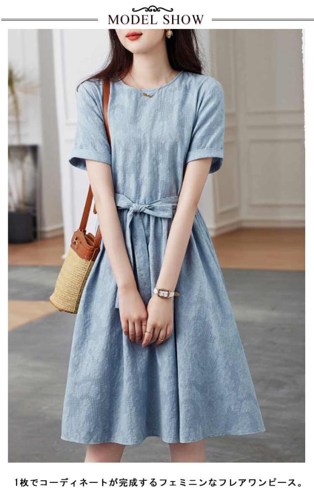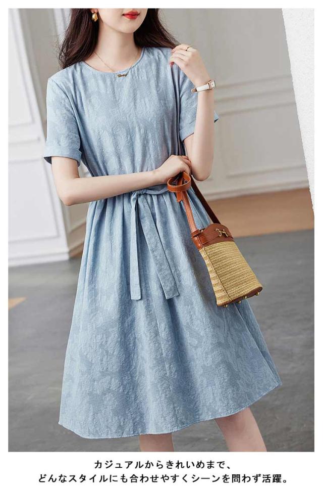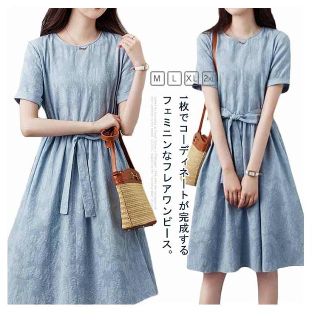 フレアワンピース 膝丈ワンピース 膝丈 ワンピース 夏 送料無料 きれいめ ワンピース ラウンドネック 花柄 リボン Aライン 着痩せ 送料無料 レディース 美シルエット 上品 おしゃれ 大人可愛い シンプル 無地 すっきり オフィス 通勤