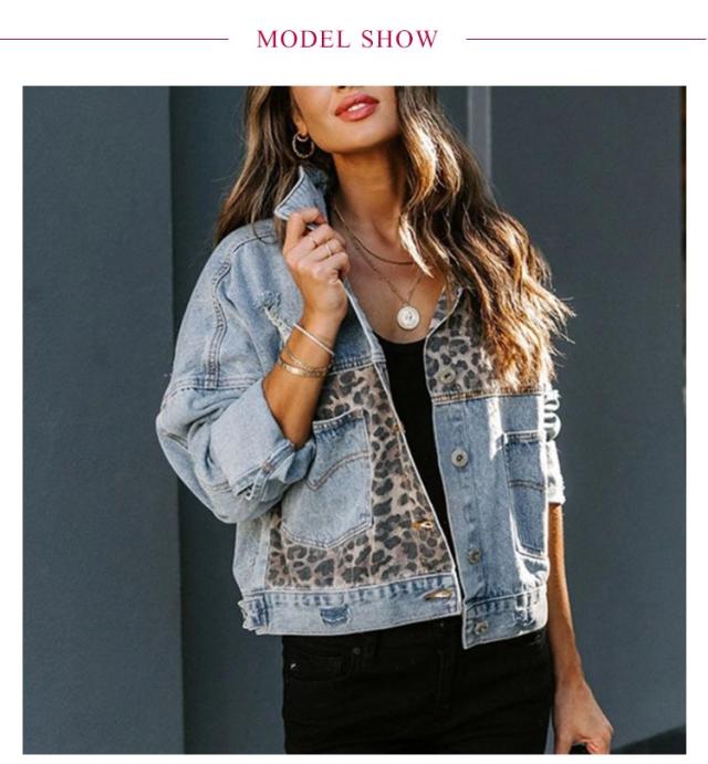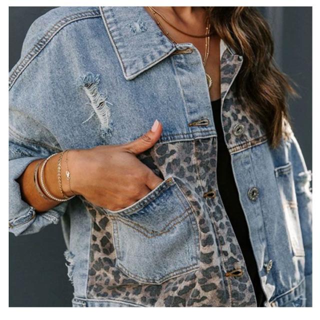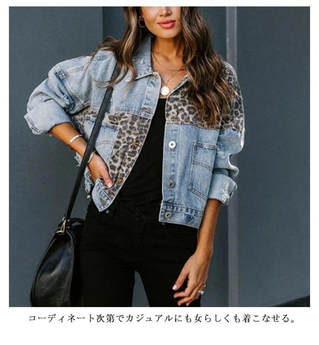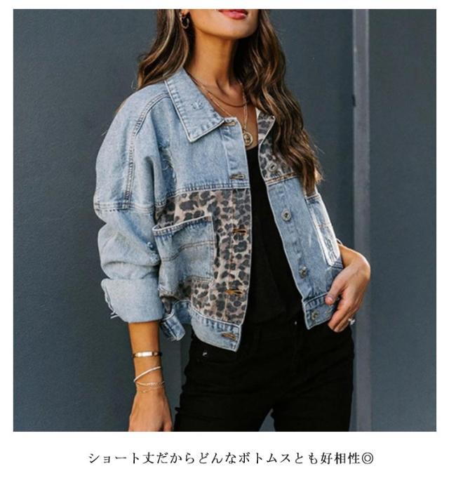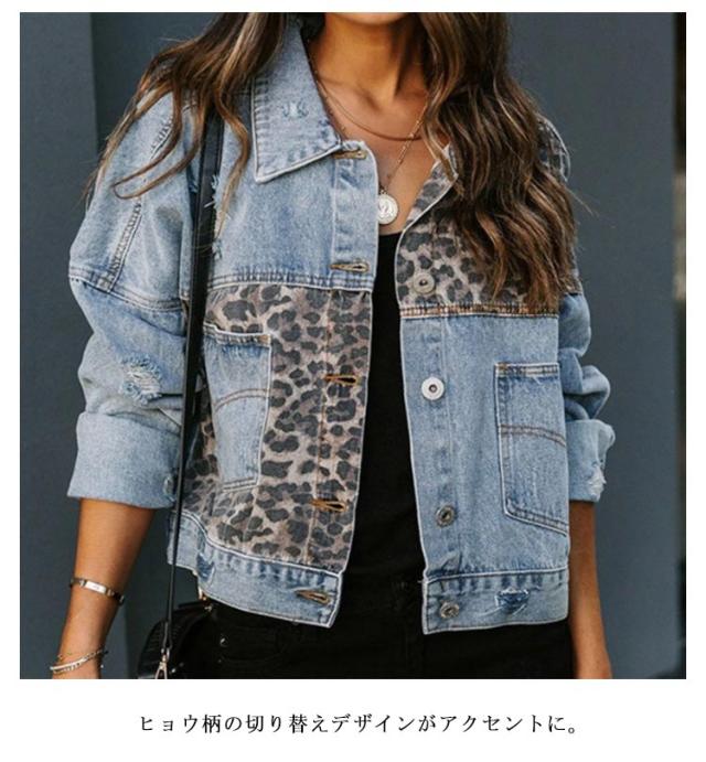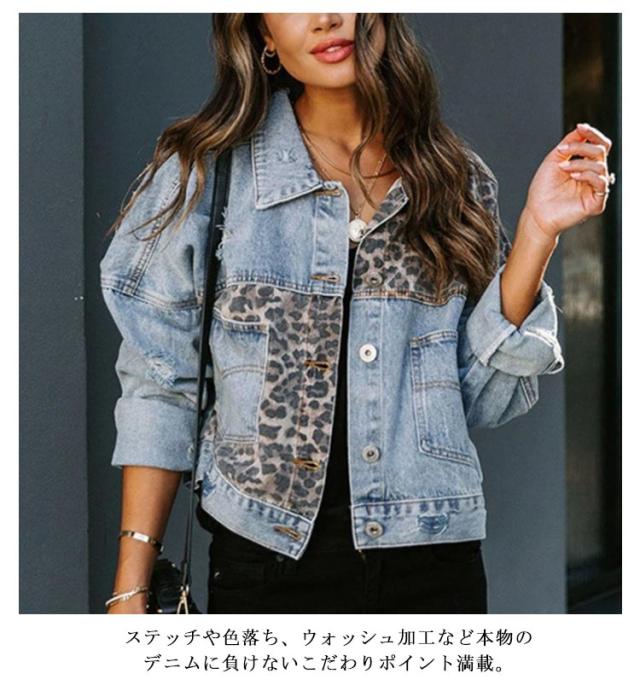可愛い レディース デニムジャケット アウター デニムジャケット ヒョウ柄 デニムコート カジュアル デート ショート丈 切り替え 春コート 秋 着?せ 夏 ハンサム 春 秋 デニムジャケット ジャケット アウター 通勤 通学 体型カバー お出かけ シンプル 大人 女性 ギフト