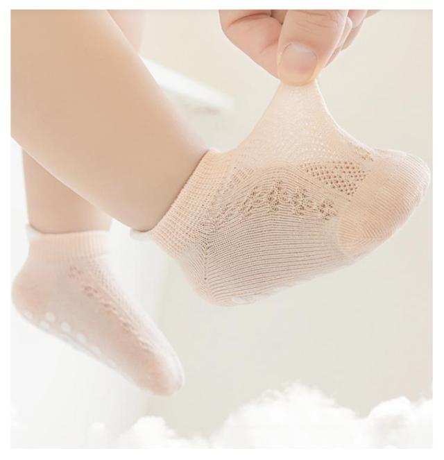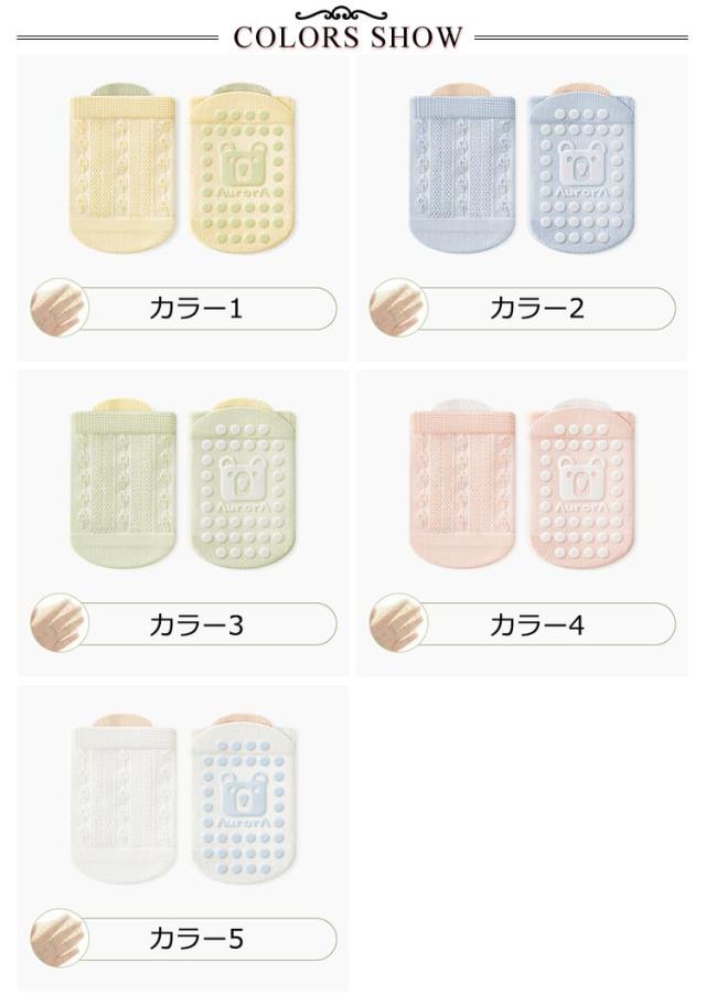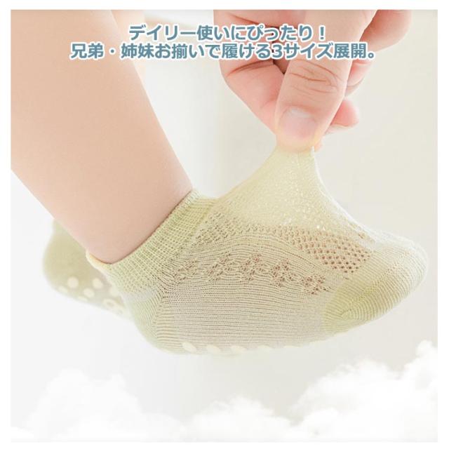| くすみカラーが可愛いベビー&キッズ用ソックス。 通気性に優れているムレないメッシュタイプが夏にぴったり。 肌馴染みの良い生地感◎伸縮性もあり、赤ちゃんの足に心地よくフィット! 足の裏には滑り止め付き、滑りやすいフローリングでも安心! たっぷりの3足セットなので履き替え用にも、プレゼントにもぜひおすすめです。 | |