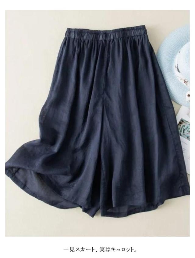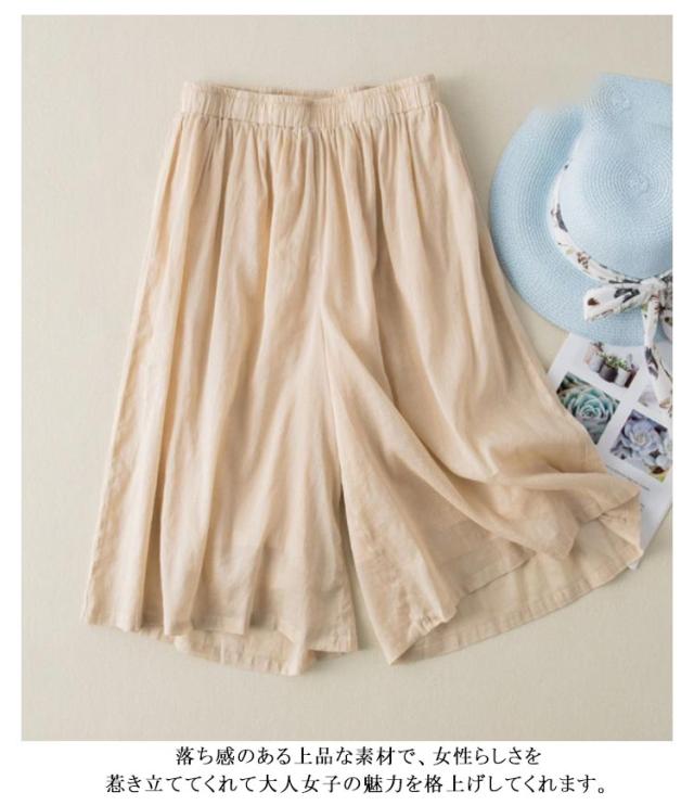 レディース リネン混 キュロットパンツ ワイドパンツ スカーチョ レディース 夏 薄手 綿麻 涼しい ガウチョパンツ 7分丈 楽ちん ルームウェア ガウチョ パンツ 袴パンツ イージーパンツ スカンツ ゆったり