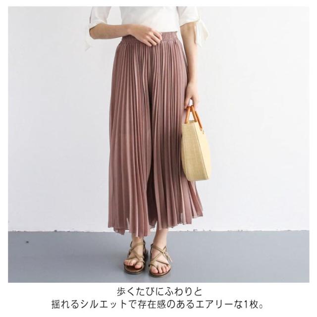 プリーツパンツ ロング シフォン スカーチョ ワイドパンツ 送料無料 プリーツスカート きれいめ プリーツ ウエストゴム ミモレ丈スカート ガウチョパンツ おしゃれ 女性 ロングパンツ ボトムス 通勤 通学 シンプル