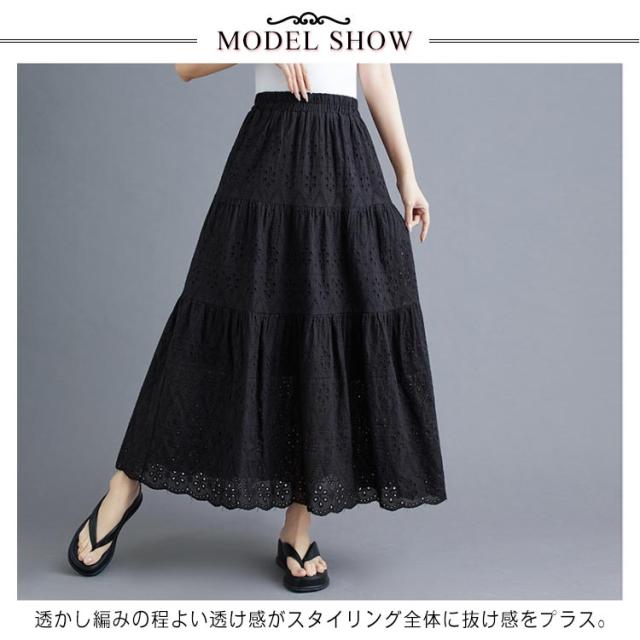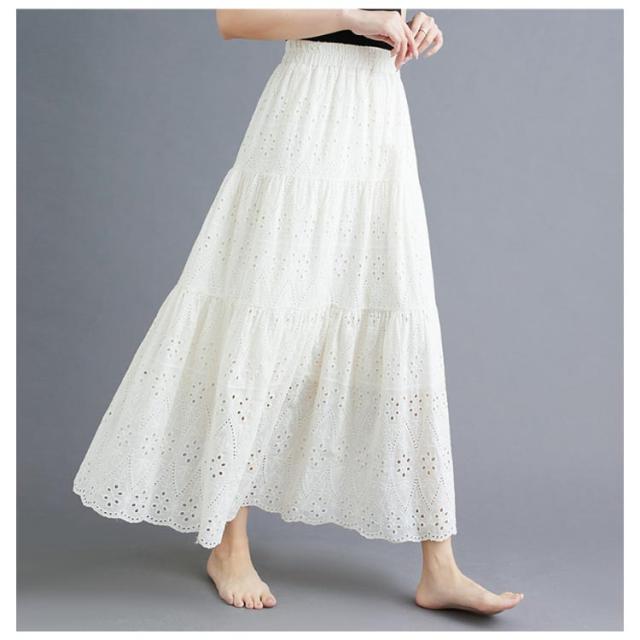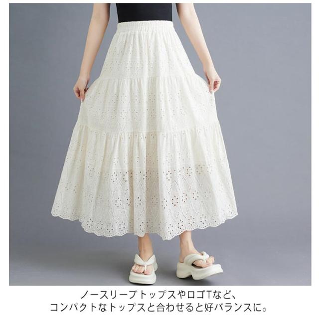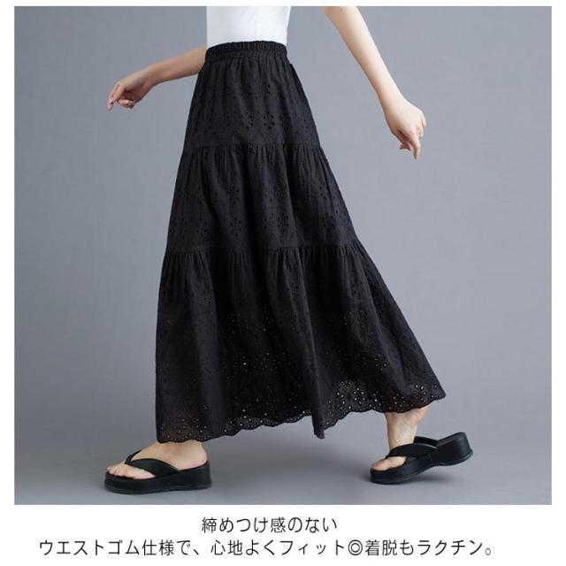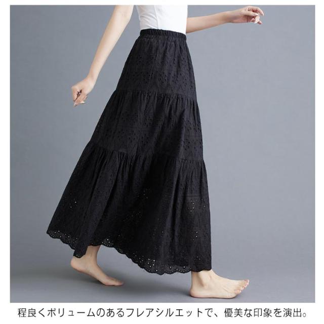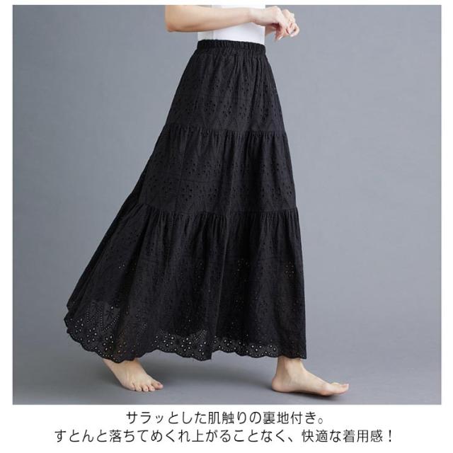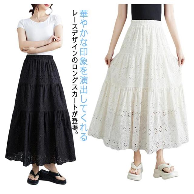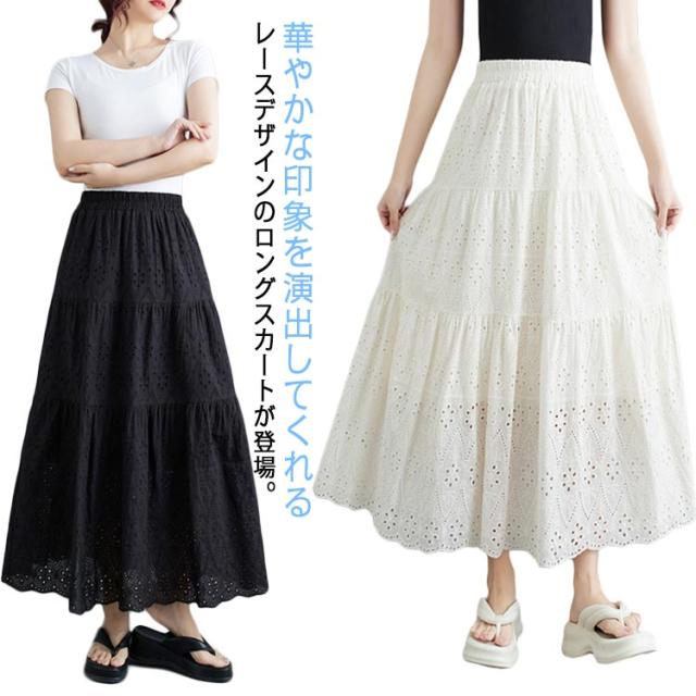 裏地 ロングスカート 透け感 ロング丈 レディース レース透かし編み ウエストゴム 送料無料 送料無料 フレアスカート ペチコート Aライン 春夏 花柄 ハイウエスト 重ね着 スカート ボトムス シンプル きれいめ カジュアル