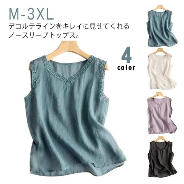 大きいサイズ ノースリーブ インナー tシャツ シンプル 送料無料 肌着 オーバーサイズ レディース ゆったりVネック タンクトップ 下着 大人 お洒落 おしゃれ 綿麻風 リネン 重ね着 着痩せ シンプル カジュアル