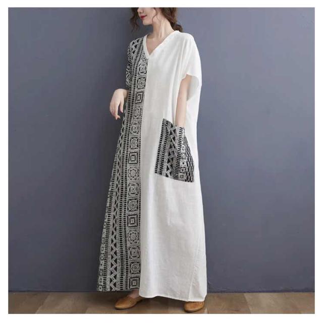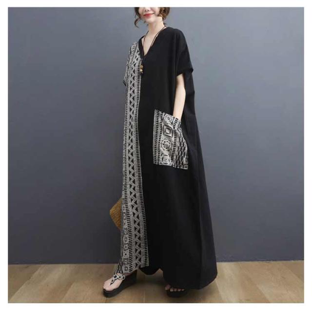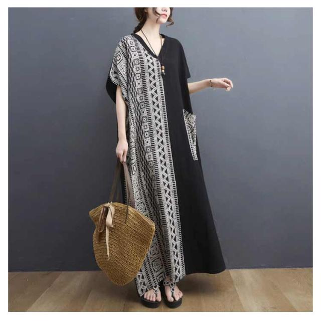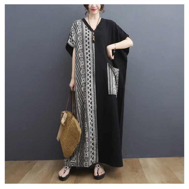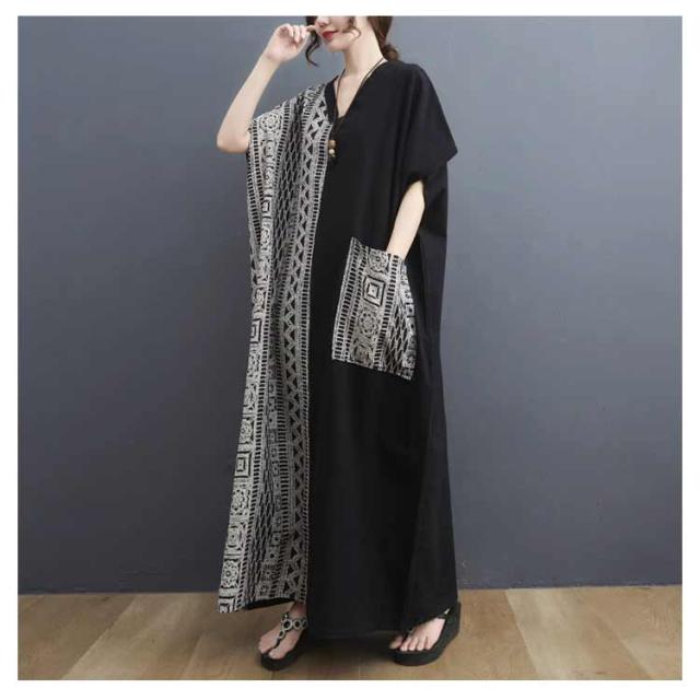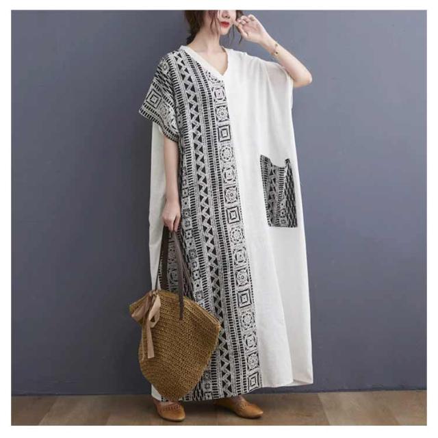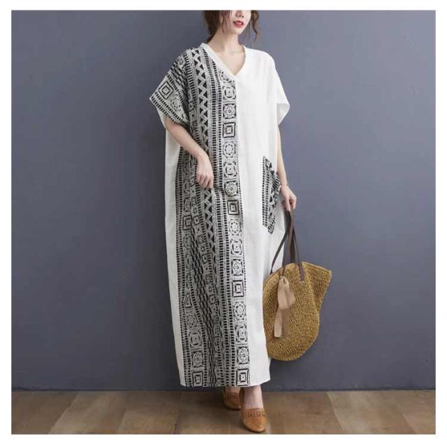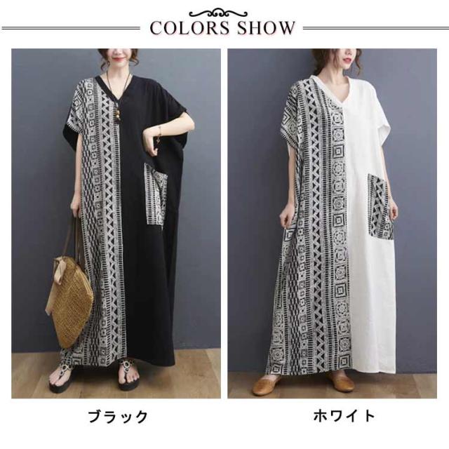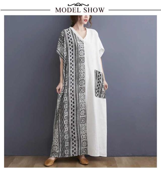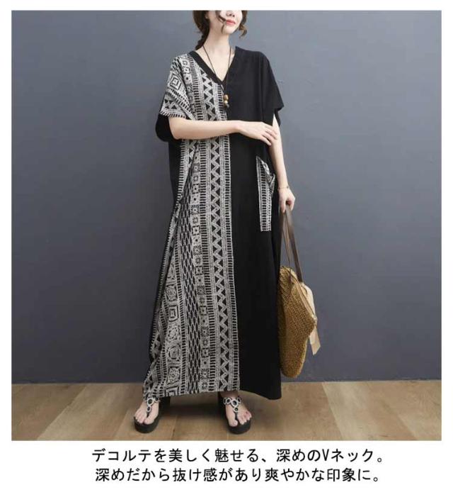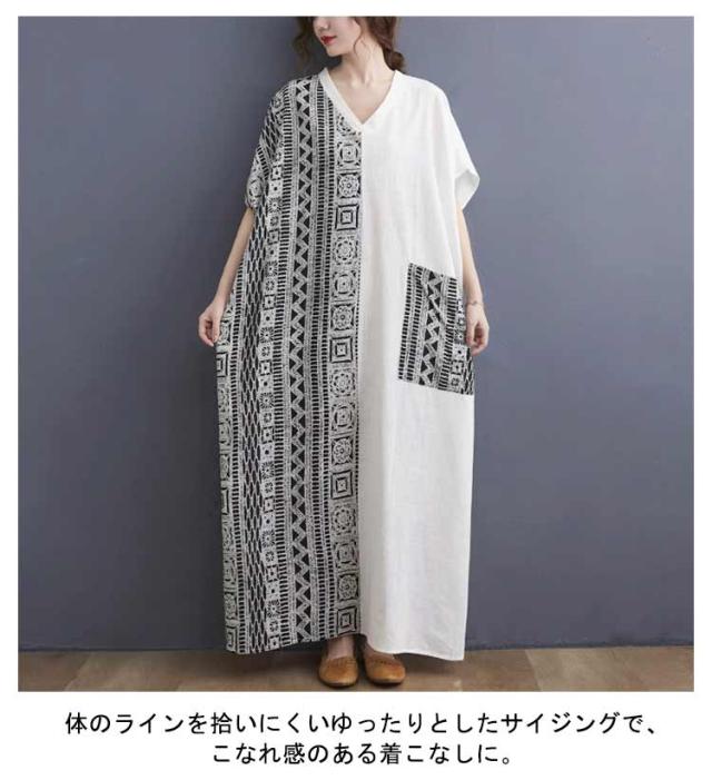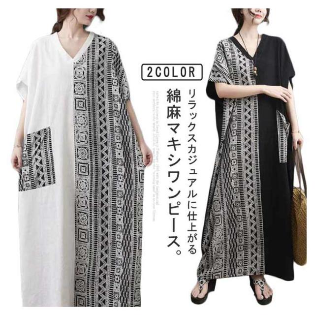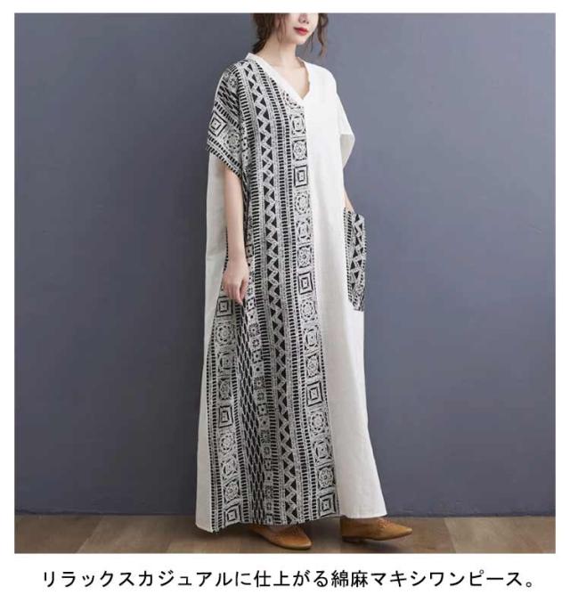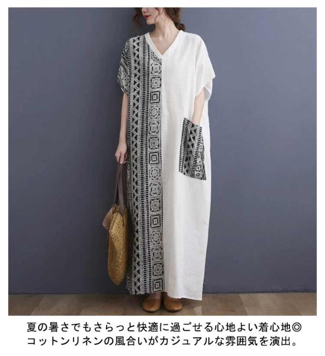麻 薄手 リネンワンピース 綿麻 ロングワンピース ナチュラル 夏ワンピース 大きいサイズ リネン 半袖 マキシワンピース Vネック マキシ丈 ロング丈 ワンピース 夏 春 無地 シンプル カジュアル ゆったり 送料無料 体型カバー