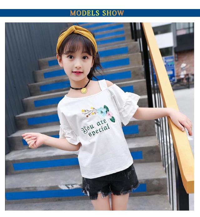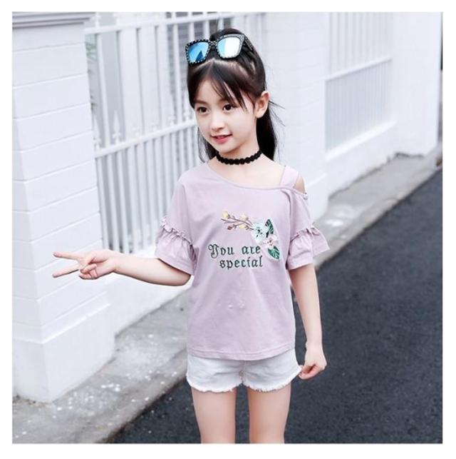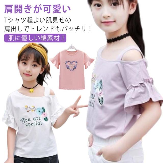 オフショルダー 可愛い 女の子 ブラウス 夏服 韓国子供服 おしゃれ 女の子 肩出し キッズ 肩開き カジュアル 綿 カットソー 子供服 ベビー服 tシャツ Tシャツ おしゃれ 女の子 ジュニア スポーツウェア 送料無料 110-120 130 140 150 160