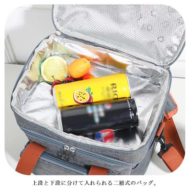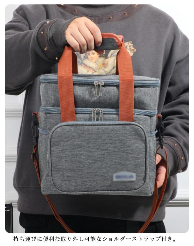 | 12Lの2層式多機能ソフトクーラーバッグ。 上段と下段に分けて入れられる二層式のバッグ。 保冷・保温効果が高く、クッション性のある丈夫なPEVA素材を内側に使用。 持ち運びに便利な取り外し可能なショルダーストラップ付き。 ピクニック、キャンプ、釣り、お花見、バーベキュー、ゴルフ、スポーツ観戦、通勤などのアウトドア活動に最適です。 夏にも冬にも使える収納バッグです、ハンドルとショルダーストラップが付いており、手持ちも肩掛けも可能です。 | |