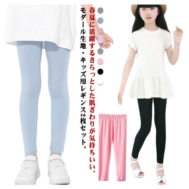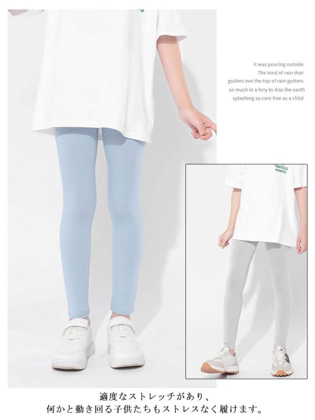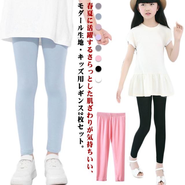 ジュニア 夏用 スポーツ スパッツ 女の子 ひんやり ガールズ 2枚セット!キッズ 薄手 接触冷感 ボトムス 吸汗速乾 春 夏 秋 おしゃれ 2枚セット!キッズ シンプル UVカット レギンス 無地 9分丈 子供服 蚊よけ ストレッチ インナー ダンス 新体操 モダール 日焼け防止
