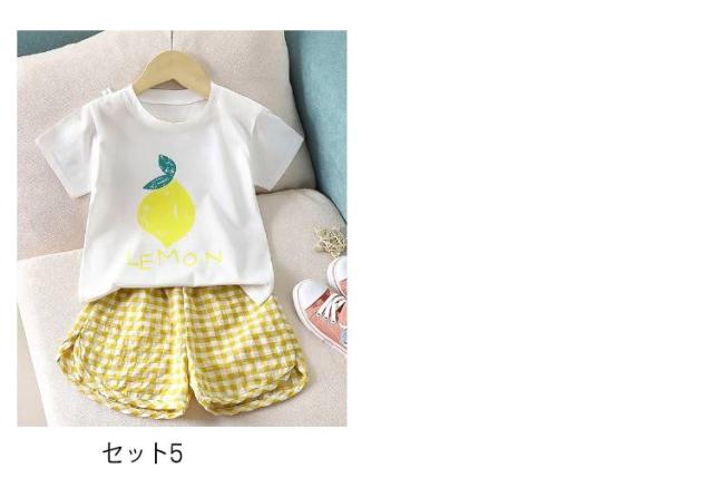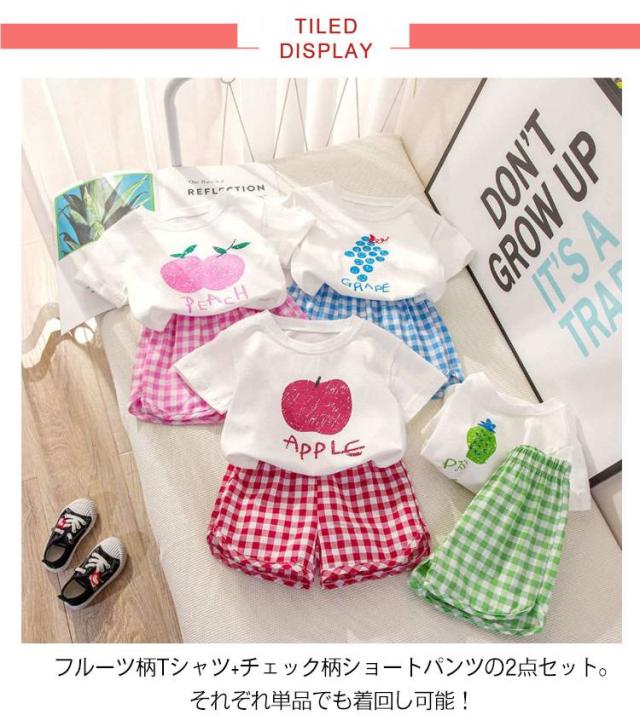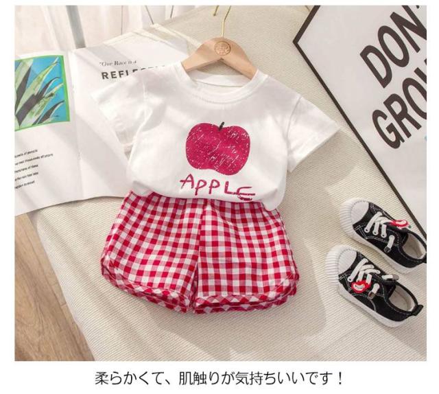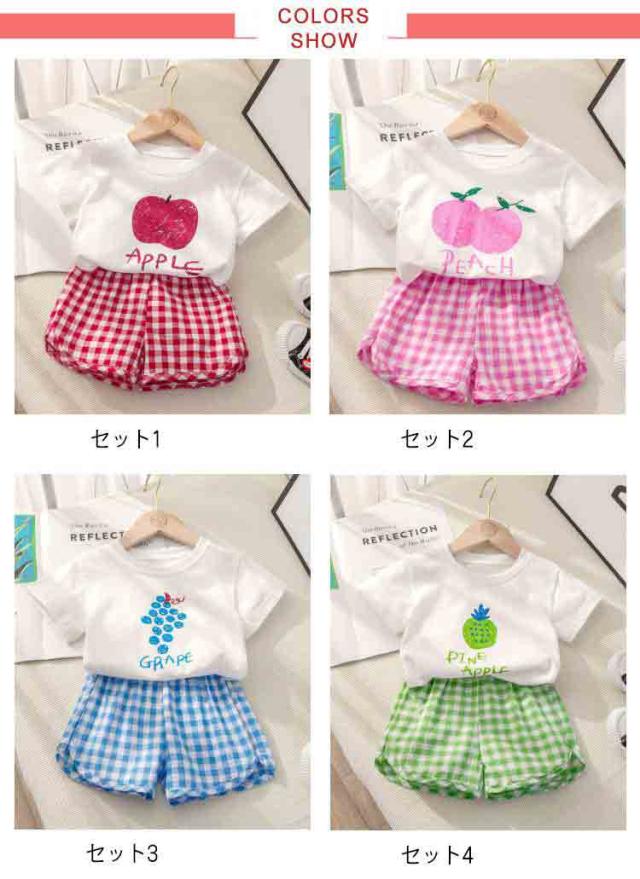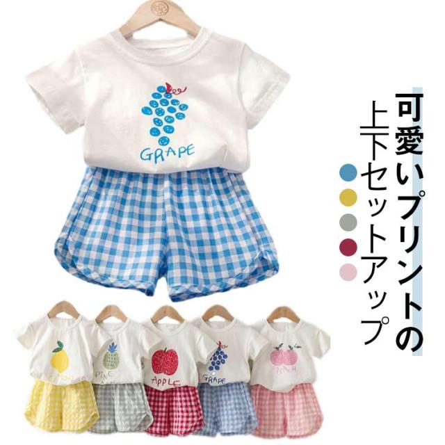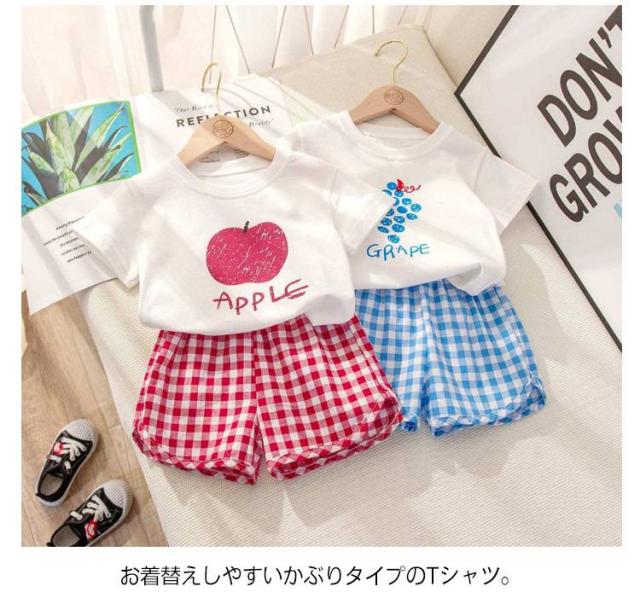 シンプル 綿 子供服 赤ちゃん 果物 ベビー服 コットン お出かけ 半袖 上下セット キッズ 女の子 男の子 ベビー服 夏 半ズボン おしゃれ セットアップ フルーツ チェック柄 短パン 薄手 保育園 幼稚園 部屋着 出産祝い ショートパンツ