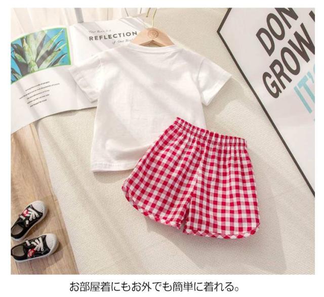 夏 ベビー服 キッズ 果物 子供服 上下セット Tシャツ 綿 赤ちゃん お出かけ セットアップ 半ズボン 男の子 おしゃれ 女の子 ベビー服 コットン シンプル フルーツ チェック柄 短パン 薄手 保育園 幼稚園 部屋着 出産祝い ショートパンツ