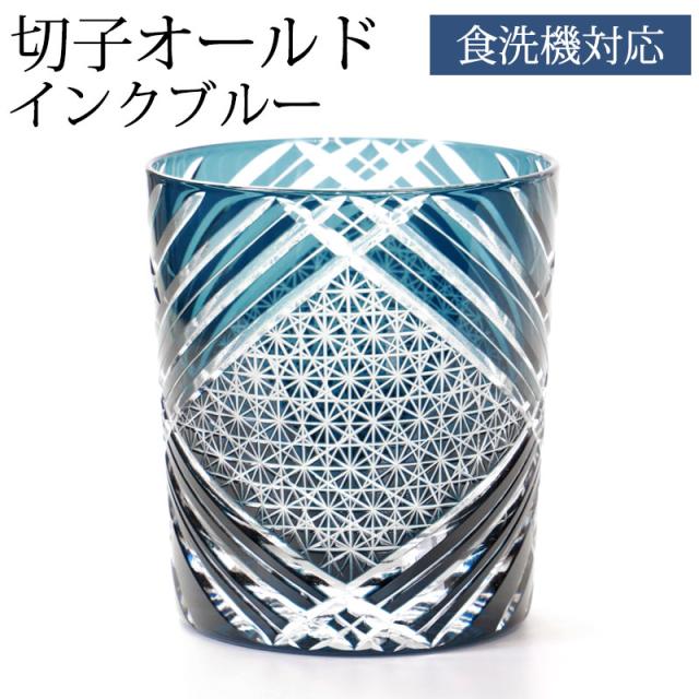 切子グラス 切子オールド 280ml 単品 切子 グラス 食洗機対応 オールドグラス 日本酒 焼酎 グラス プレゼント 母の日 父の日 還暦祝い 退職祝い ギフト おしゃれ ロックグラス ガラス コップ 青 インクブルー きりこ