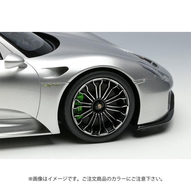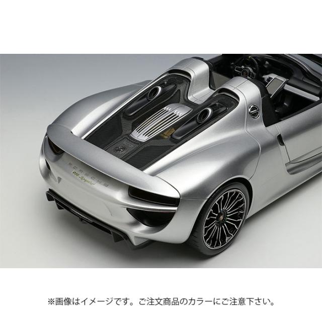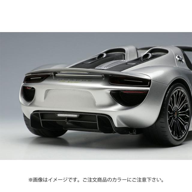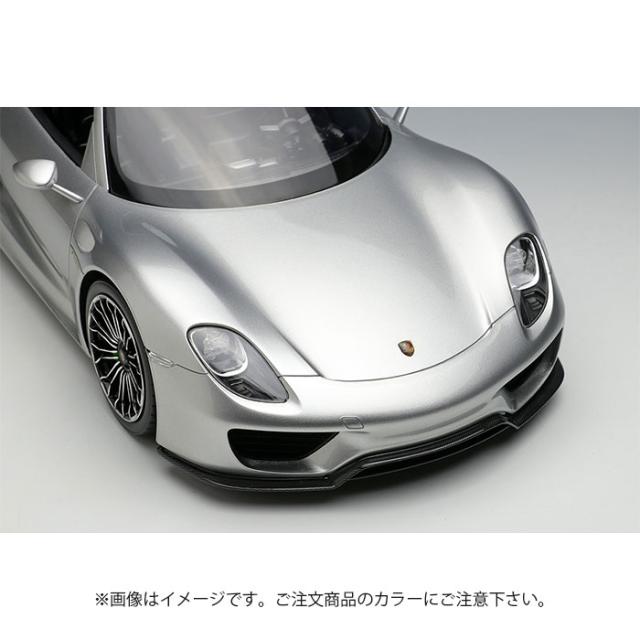 『EIDOLON(アイドロン)』の1/18スケール・ハンドメイド・モデルカーとして製作した「ポルシェ918スパイダー2011」です。2010年のジュネーヴ国際モーターショーで発表された「ポルシェ918スパイダー」を忠実に再現したモデルです。 【車両解説】918スパイダーは2010年のジュネーヴ国際モーターショーで発表されました。フラッグシップモデルの「カレラGT」を凌ぐ高機動性と、ハイブリットシステムを搭載することによりコンパクトカー並みの環境性能を両立したハイパースポーツカーとして発表されました。2013年のリリースですべてのスペックが明らかになりました。エンジンは[RSSpyder]譲りのV84.6Lエンジン、モーターはフロントに2つ、リア軸トランスミッションに1つ、合計3個が取り付けられました。シャーシはカーボンモノコック、基本レイアウトは「カレラGT」を踏襲しており販売予定台数に届かなかった部品がうまく流用されました。エクステリアのデザインは1970年代にレースシーンを席巻したプロトタイプレーシングカー「ポルシェ917K」とされています。そこに開閉式のアンダーフロアフラップや、リトラクタブルリアウイング、可変エアインテークなどを組み合わせた「ポルシェ・アクティブエアロダイナミクス(PAA)」を組み合わせてデザインされています。それだけでも十分な機動性を誇る918スパイダーですが、さらなるスペックアップを求める顧客の為に無塗装カーボンエクステリアパーツ、マグネシウムホイールなどから構成される「ヴァイザッハパッケージ」が用意されました。インテリアのアルカンターラ化、遮音材の省略、アルミパーツをカーボンに置き換え、約35kgの軽量化を達成します。 【モデル解説】国内で現存する「918スパイダー」のオーナー様に取材協力を頂き、実車の3Dスキャンが実現しました。メイクアップのモデル作りのセオリーに則り、余計なデフォルメを行わず実車の雰囲気をそのままスケールダウンした客観的な造形を目指しました。全体が滑らかな曲面で構成されているボディは、3Dスキャナを用いたCAD設計との相性が抜群です。918スパイダーのアイキャッチポイントとしてエンジンフードが挙げられます。全面が六角形のハニカムメッシュで覆われており、内部が透けて見えます。モデルも実車に合わせ、メッシュ部分にプレス加工を施したエッチングパーツを組み込み、またそのメッシュ越しに見えるモールドも簡潔ではありますが表現しています。ヘッドライトやテールライトはハウジングやリフレクター形状を1/18の限界に近い解像度で造形、彩色し、その上にインジェクション成型品でボディの面に曲率を合わせたクリアカバーを装着しています。複雑な形状のホイールはスキャンデータを基に設計しています。最初にインジェクション成型品のプラスティック素材を使用することを決めているので、エッジの厚みや、スポークの太さを薄くリアルに設計することができます。今後、1/18スケールの918スパイダーのバリエーション、ヴァイザッハパッケージ、カレラGTなども続々登場予定です。是非、ハイディテールなミッドシップハイパーポルシェをコレクションの仲間入りさせてください。