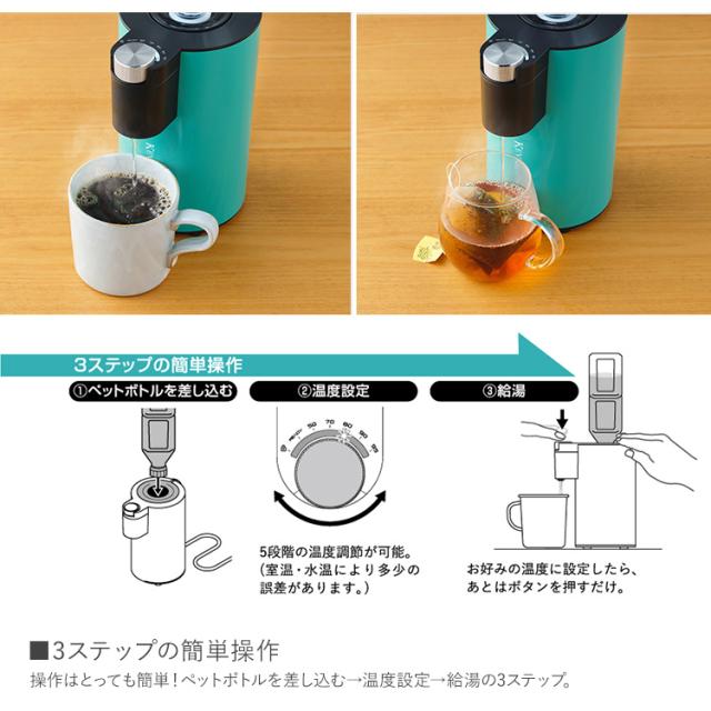 ペットボトルのお水をセットして、サッとお湯が用意できるクイックホットウォーターディスペンサー。