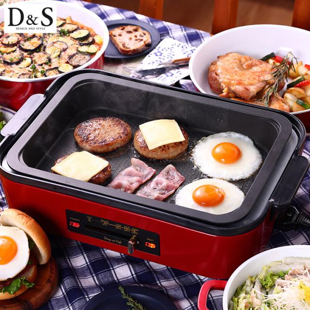 D&S ホットプレート DS.8557 調理家電 調理器具 深型 焼肉 鍋 パーティー 温度調節 キッチン家電 キッチン用品 シンプル スタイリッシュ おしゃれ