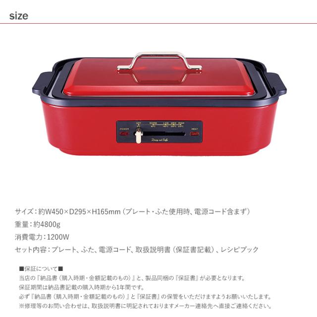 サイズ:約W450×D295×H165mm(プレート・ふた使用時、電源コード含まず)