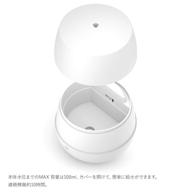 本体水位までのMAX 容量は100ml、カバーを開けて、簡単に給水ができます。連続稼働約10時間。