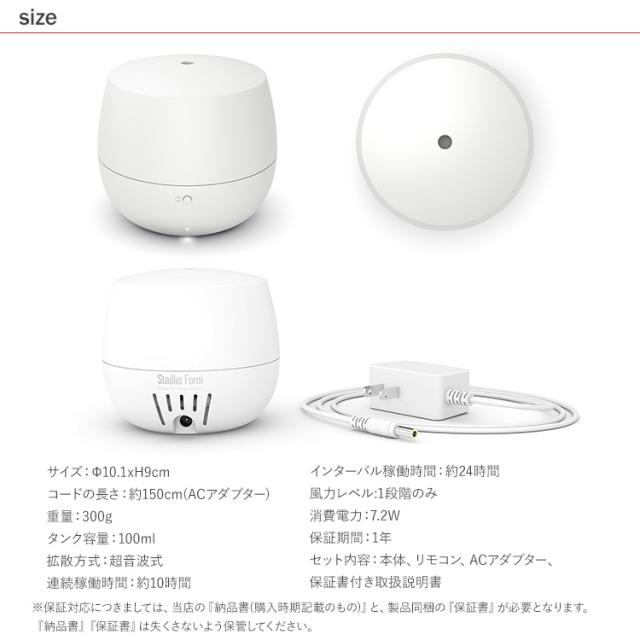 Stadler Form スタドラフォーム Mia 超音波式アロマディフューザー 4992831029601 卓上 小型 静音 LEDライト おシンプル しゃれ 癒し 北欧 インテリア リビング 寝室 キッチン玄関