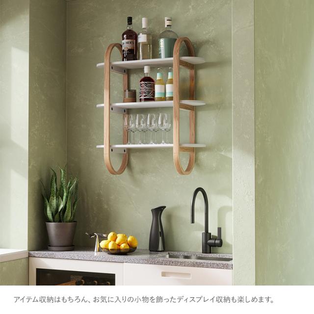 角丸加工された柔らかいフォルムが美しい壁面収納棚