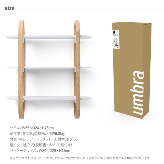 木製 シェルフ Umbra アンブラ ベルウッド ウォールシェルフ 3段 21016859668 シェルフ棚 収納棚 壁面収納 ブラケット棚 ウッドシェルフ ディスプレイラック 幅65 ナチュラル シンプル 玄関 リビング 寝室 キッチン おしゃれ 北欧