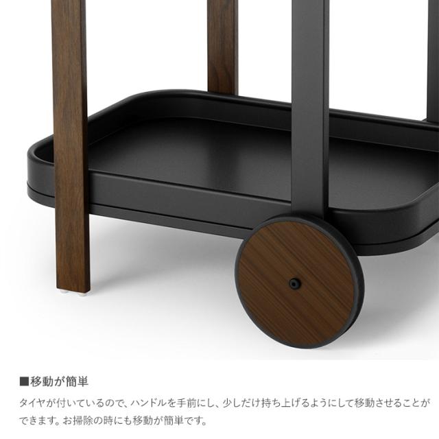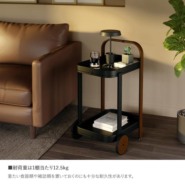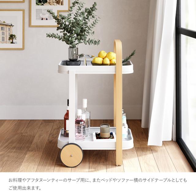 お料理やアフタヌーンティーのサーブ用に、またベッドやソファー横のサイドテーブルとしてもご使用出来ます。タイヤが付いているので、ハンドルを手前にし、少しだけ持ち上げるようにして移動させることができます。