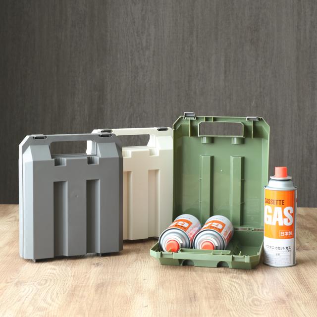 収納ケースについて紙パッケージ開封後のカセットガスボンベを、スッキリ収納・運搬できるケース。