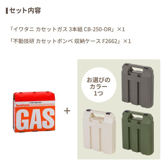 セット内容「岩谷産業 カセットガスオレンジ 3本組」×1、「不動技研 カセットボンベ収納ケース」×1