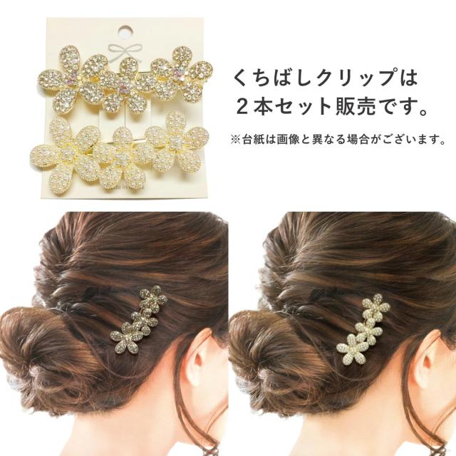 キラキラで可愛らしいヘアクリップは、ストーンと小粒パールの便利な2本セット