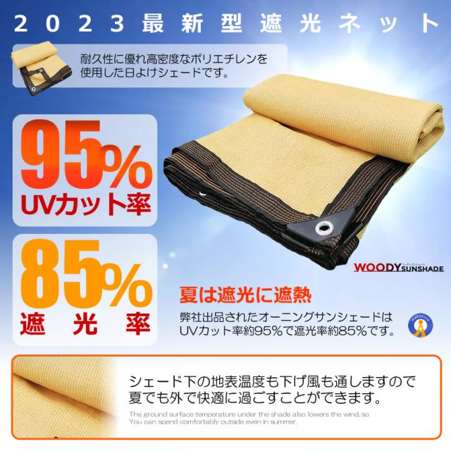 2023最新型遮光ネット耐久性に優れ高密度なポリエチレンを使用した日よけシェードです。専用の縁を広くして6本の線の端を強化して引き裂きにくい仕様となっております。サンシェードネットの四隅には三角形の保護コーナーがあり1mごとに両側にグロメットがあります。吊り下げが簡単で風に抵抗する性は強いです。夏は遮光に遮熱弊社出品されたオーニングサンシェードはUVカット率約95%で遮光率約85%です。エアコンの使用も抑えられますので節電に最適です。取付け簡単取り付けはロープで縛るだけです送料無料