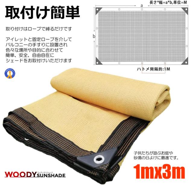 オーニング サンシェード 防水 3mx1m 目隠し 目かくし 遮光 タープ 日よけ シート 涼風シェード UVカット ガーデニング ネット WOODYSAN
