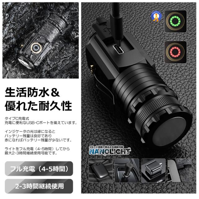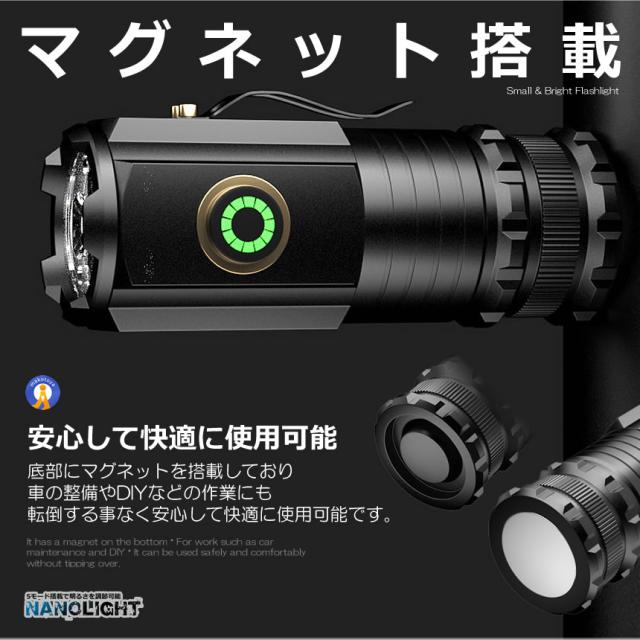 懐中電灯 1000LM LED 強力 小型 18350電池 対応 磁石 5つのモード 照明 高輝度 キャンプ ハンディライト 夜釣り 登山 防水 ナノライト 防災 災害 NONOLIGHT