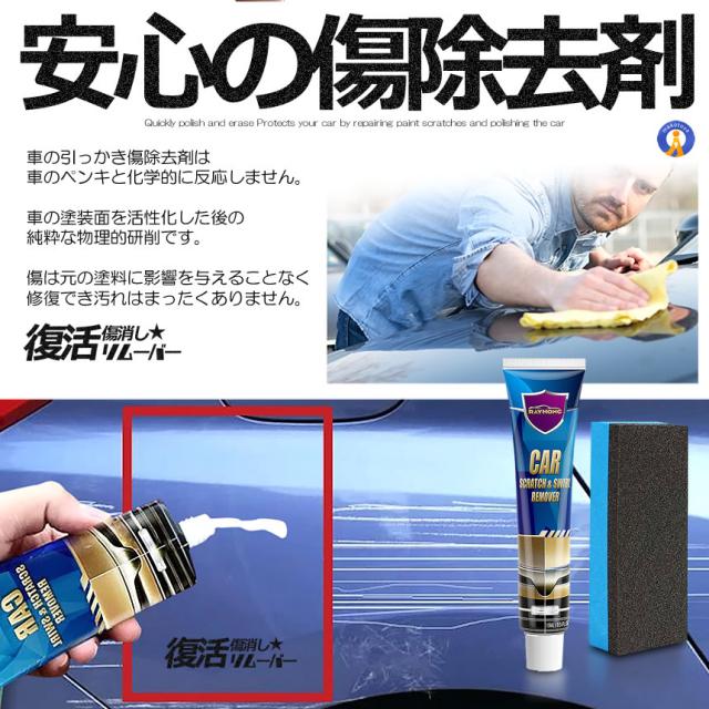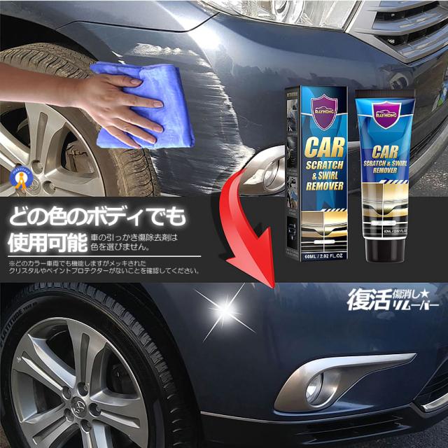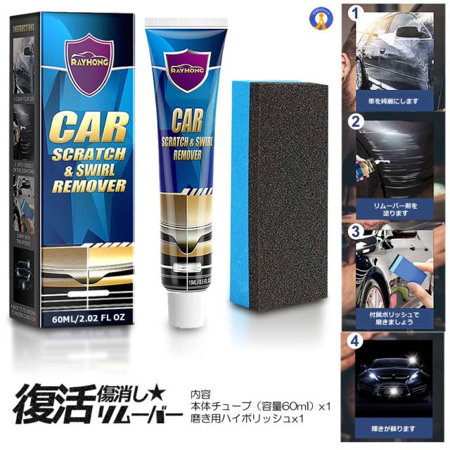 サッと磨いて消す!プロも太鼓判の驚きのキズ消しリムーバー塗装の傷を修復し車の表面を磨き車を保護します。持ち運びが簡単でいつでもどこでも使用できます。●気になる小キズを集中補修●どんな色の車でもOK!!●気になる傷に塗って拭き取るだけで簡単キレイ!!●プロも認めた仕上がり!どの色のボディでも使用可能!あらゆる場所の傷隠しに!ドアノブの爪の引っかき傷や引っかき傷小さな引っかき傷、塗装、磨き、塗装の渦巻きなどの傷に適しています。内容本体チューブx1(内容量60ml)磨き用ハイポリッシュx1送料無料