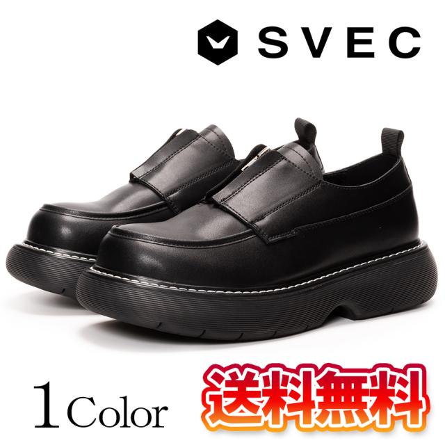 送料無料 厚底シューズ メンズ センタージップシューズ 黒 ブラック レザー ジップ 通勤 通学 厚底 カッコいい ローファー スニーカーシューズ ブランド SVEC 足長 シュベック スタイルアップ モードる 靴 シューズ