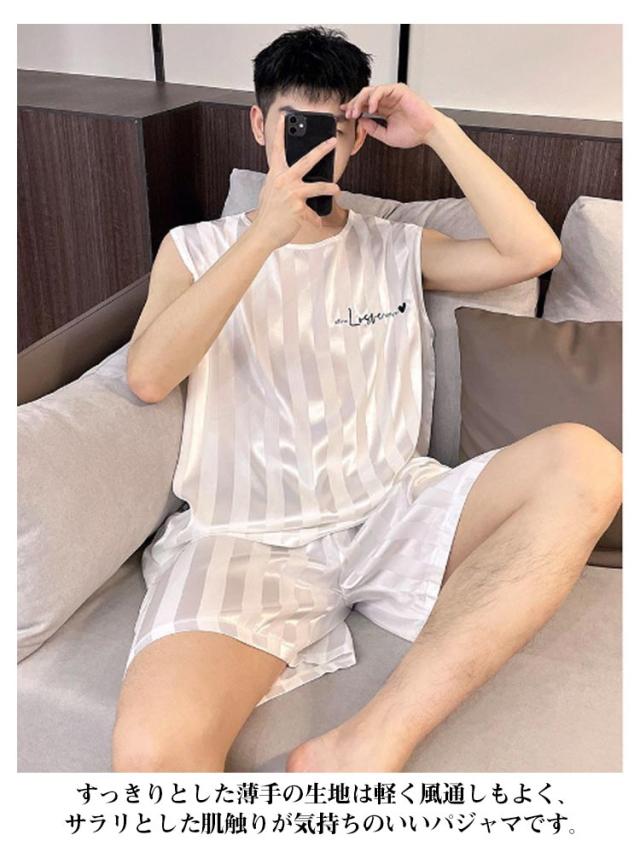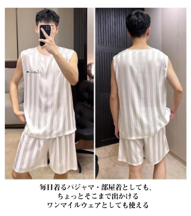 パジャマ メンズ サテン 上下 冷感 夏 吸汗速乾 ノースリーブ ルームウェア 部屋着 ひんやり 涼しい 男性 ストレッチ タンクトップ ショートパンツ 涼しい 大きいサイズ 短パン 無地 寝間着 接触冷感 セットアップ ギフト 梅雨対策 UVカット 薄手 伸縮性 送料無料