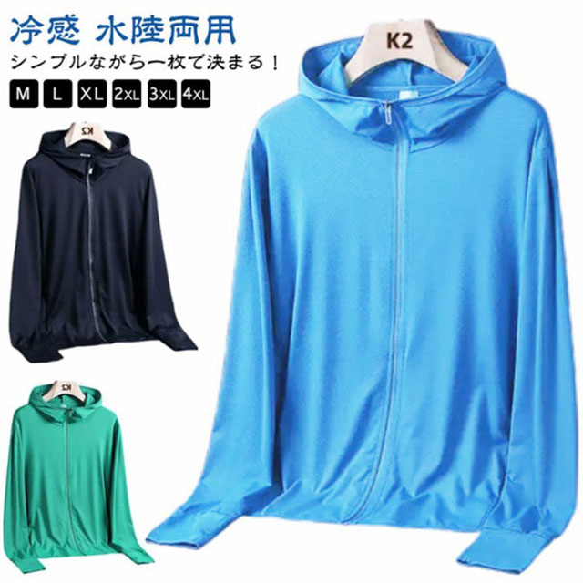 ラッシュガード パーカー メンズ フード 水着 長袖 ジップ 冷感 水陸両用 UVパーカー 大きいサイズ ジャケット 長袖 UVカット 紫外線対策 立ち襟 夏服 日焼け止め 熱中症対策 薄手 軽量 速乾 トップス アウター 体型カバー UVカット 黒 おしゃれ 送料無料