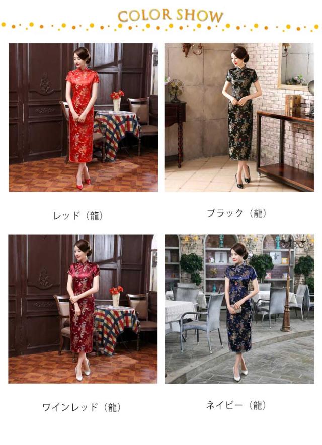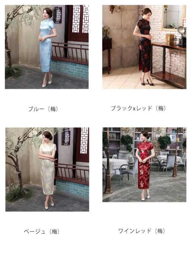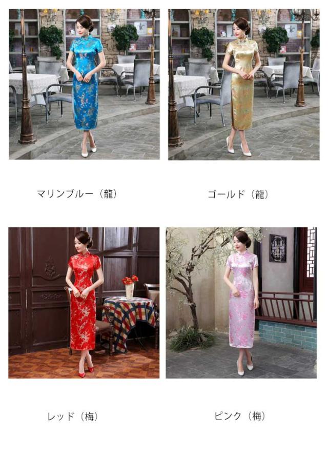 チャイナドレス ロング パーティードレス チャイナ服 チャイナ ドレス ロングドレス ハロウィン コスプレ 大きいサイズ 半袖 長袖 ノースリーブ ホルターネック 梅柄 うめ 龍 りゅう 鳳凰 ほうおう 柄 刺繍 ロング丈 コスプレ 衣装 中国 中華 コスチューム China Dress