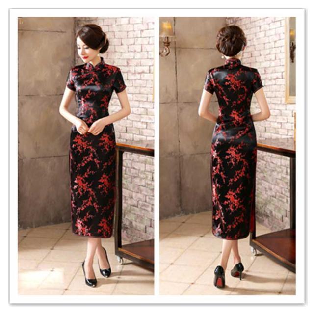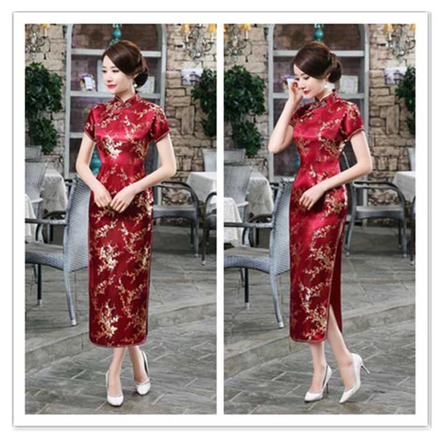 | 上品な刺繍が施されたロング丈チャイナドレス・ロングドレス フロントは女性らしさを際立たせるセクシーなお作りに 光沢がある生地感がとても綺麗、普段使いから、パーティー、二次会にもお勧め! | |