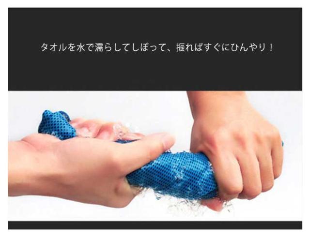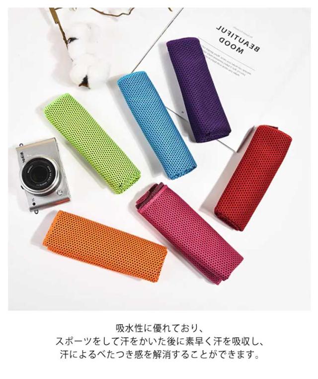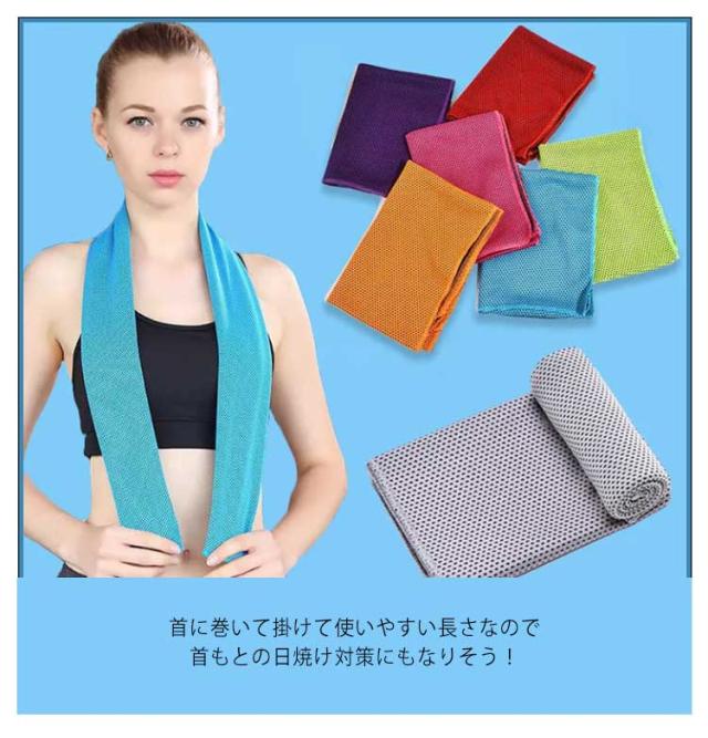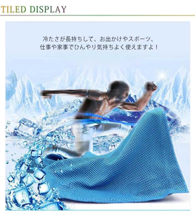 | 3枚セット!ひんやりと冷たく気持ちいい冷感タオルが新登場! タオルを水で濡らしてしぼって、振ればすぐにひんやり! タオルから水が蒸発するとき気化熱の作用で効率よく冷却効果が得られ、タオルがすぐにひんやり冷たくなるんです! 吸水性に優れており、スポーツをして汗をかいた後に素早く汗を吸収し、汗によるべたつき感を解消することができます。 首に巻いて掛けて使いやすい長さなので首もとの日焼け対策にもなりそう! 冷たさが長持ちして、お出かけやスポーツ、仕事や家事でひんやり気持ちよく使えますよ! | |