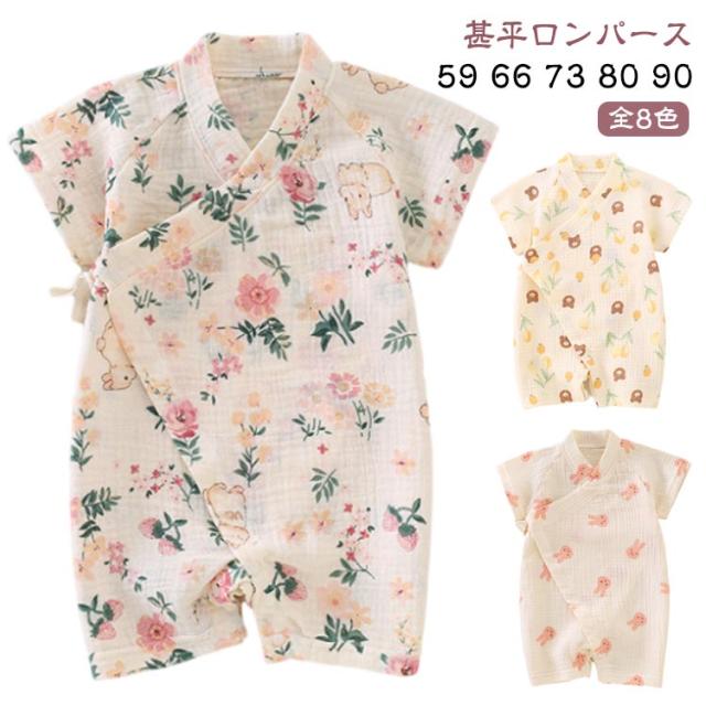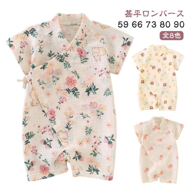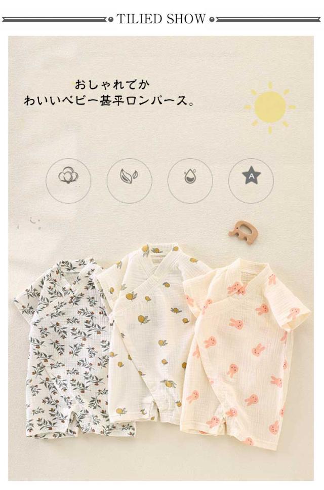 ガーゼ 赤ちゃん ショートオール 甚平ロンパース ベビー 女の子 男の子 半袖 赤ちゃん 甚平オール 浴衣 キッズ 可愛い 出産祝い ベビー服 パジャマ 新生児 夏物 お宮参り お誕生日 退院 プレゼント 記念写真撮影 ギフト 59 66 73 80 90cm