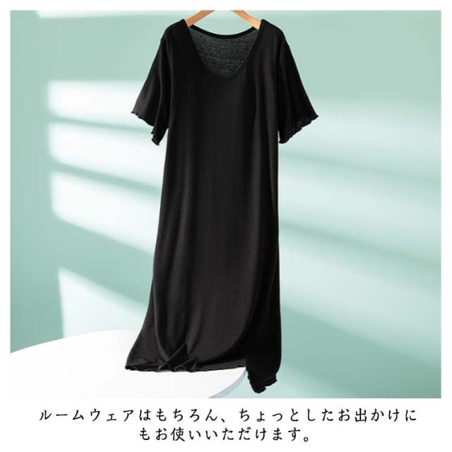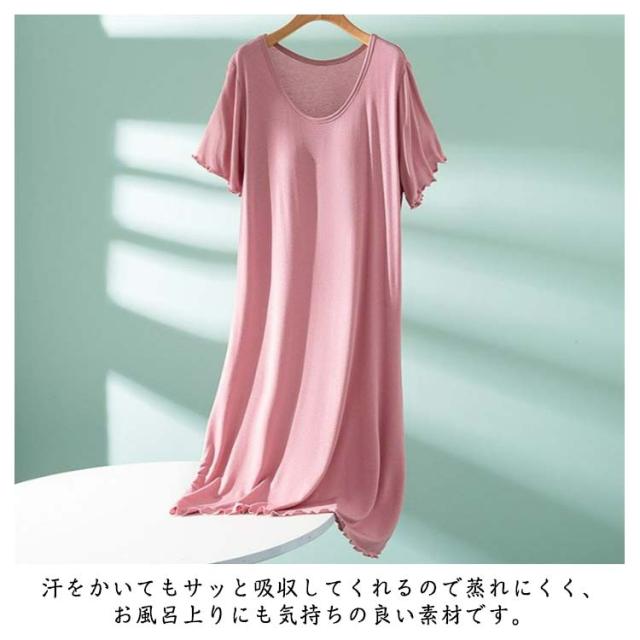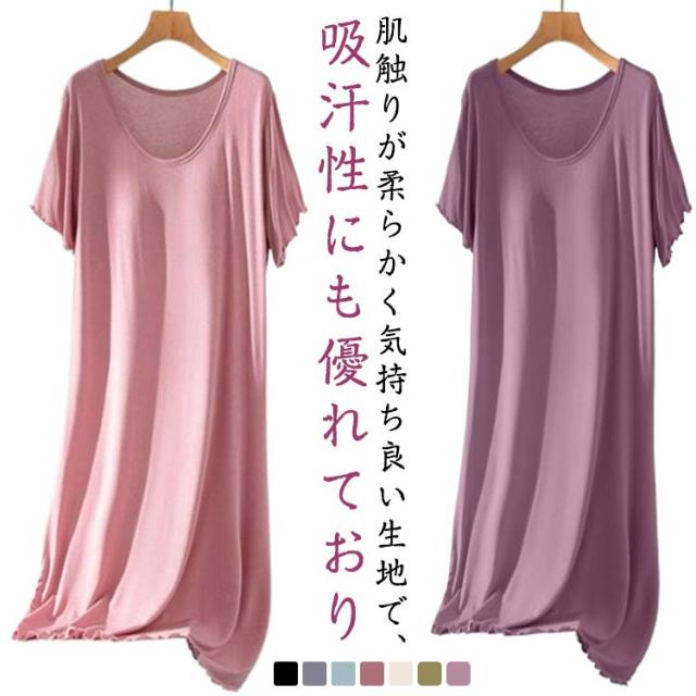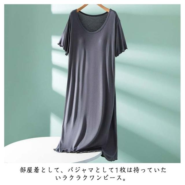 ネグリジェ パジャマ ワンピース カップ付き 半袖 パジャマ 夏 ロング丈 無地 ルームウェア ロングTシャツ カップ付き 半袖ワンピース クルーネック 大きいサイズ ワンピース 部屋着 ナイトウェア ゆったり 送料無料